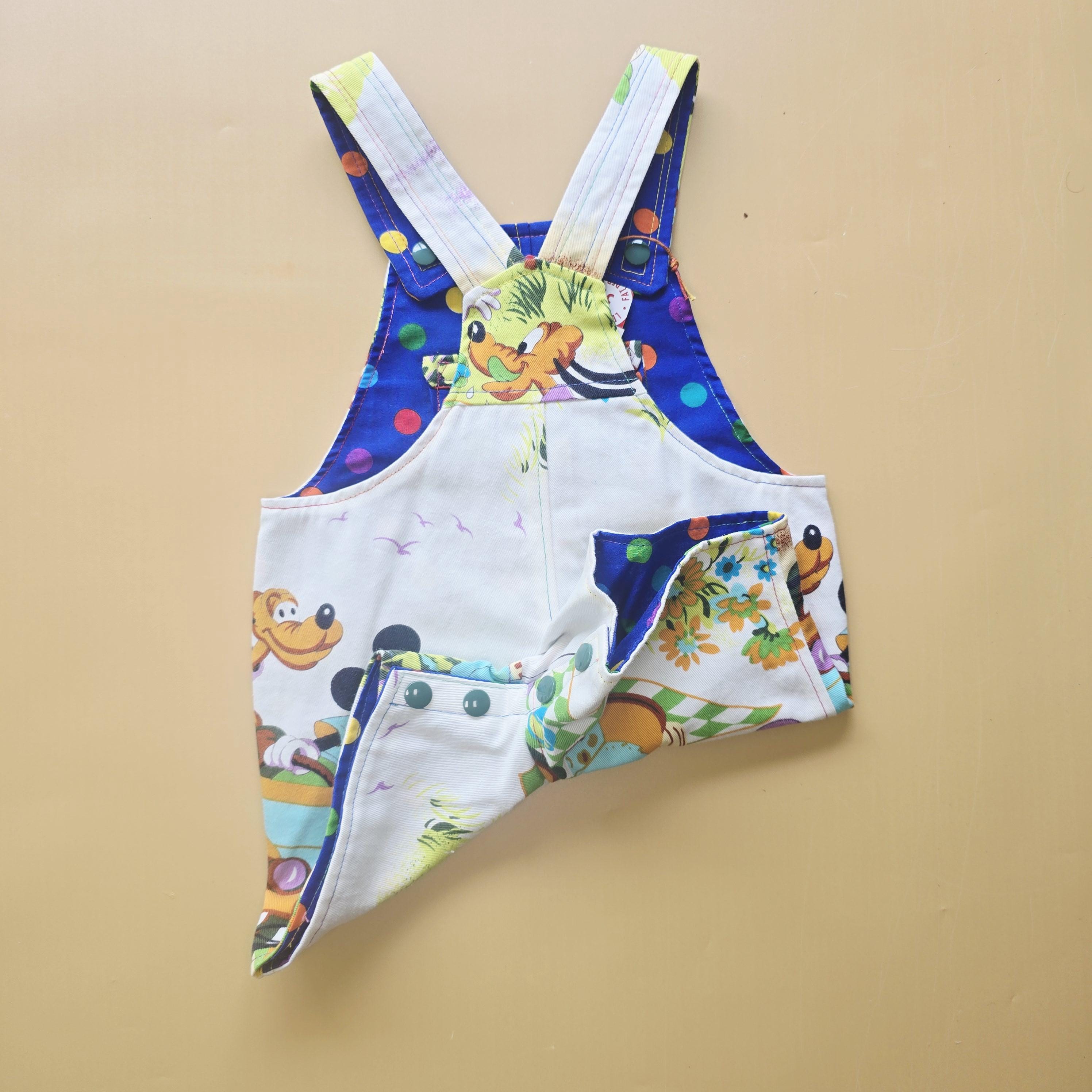 The combination of super rare vintage disney gummerson screenprint cotton and vintage polkadot print cotton make them super unique and one of a kind.