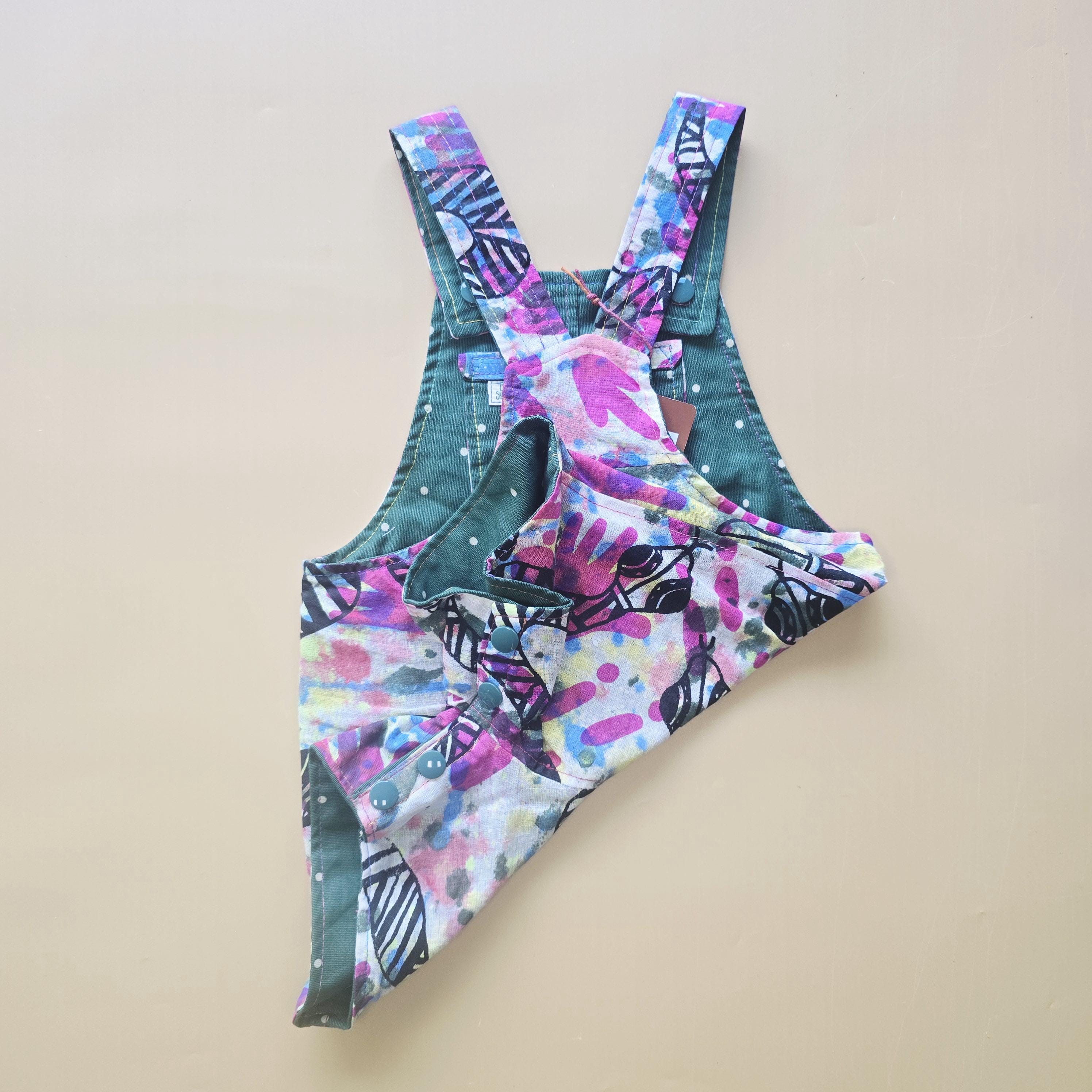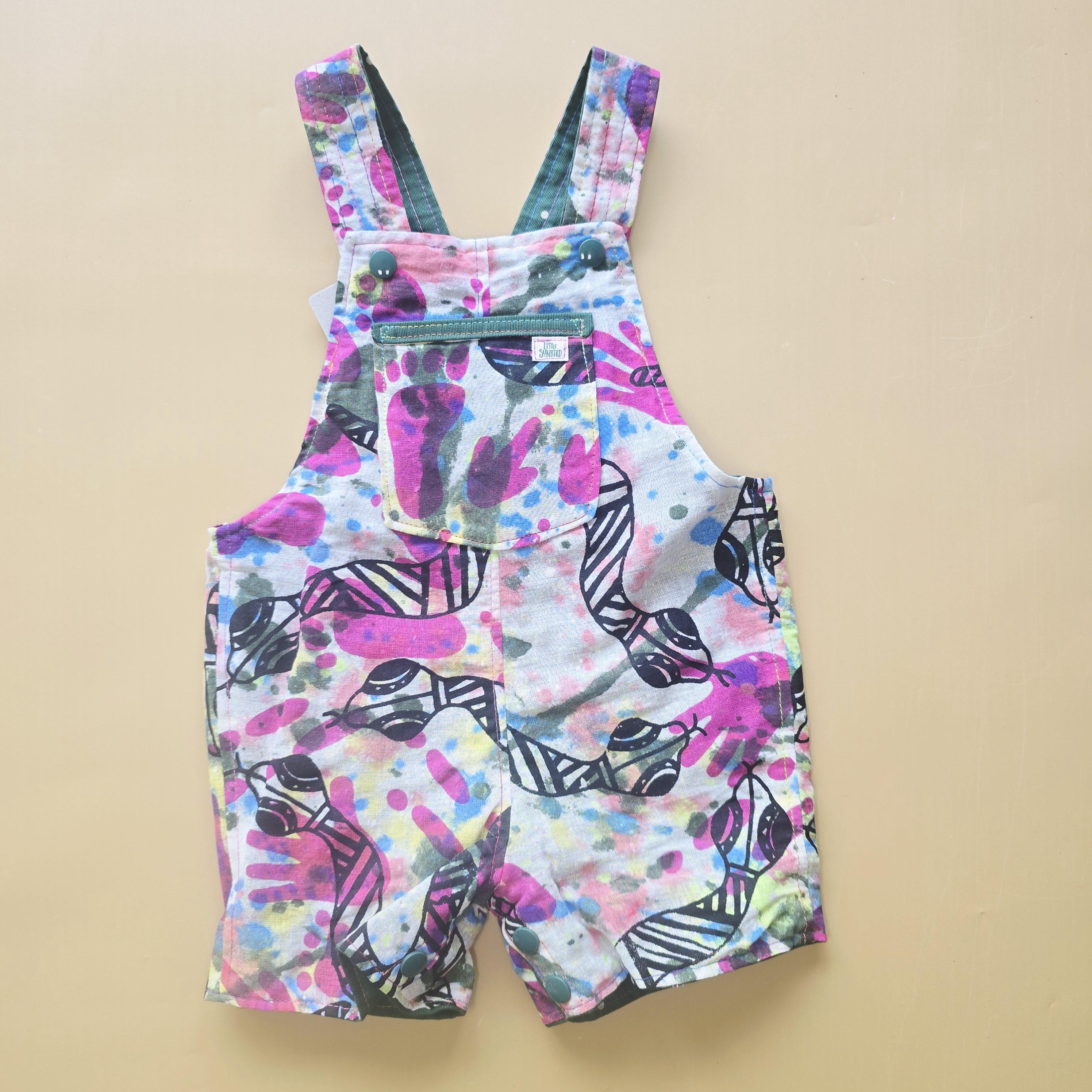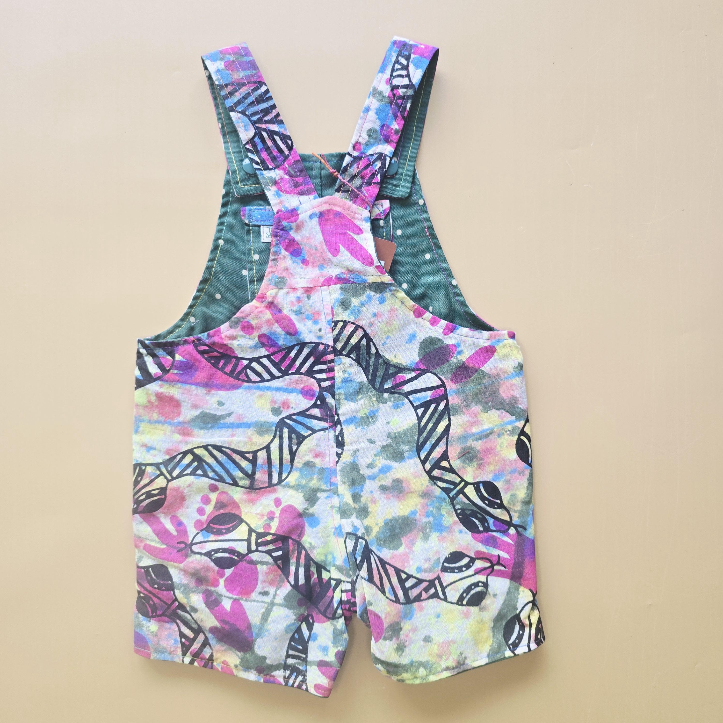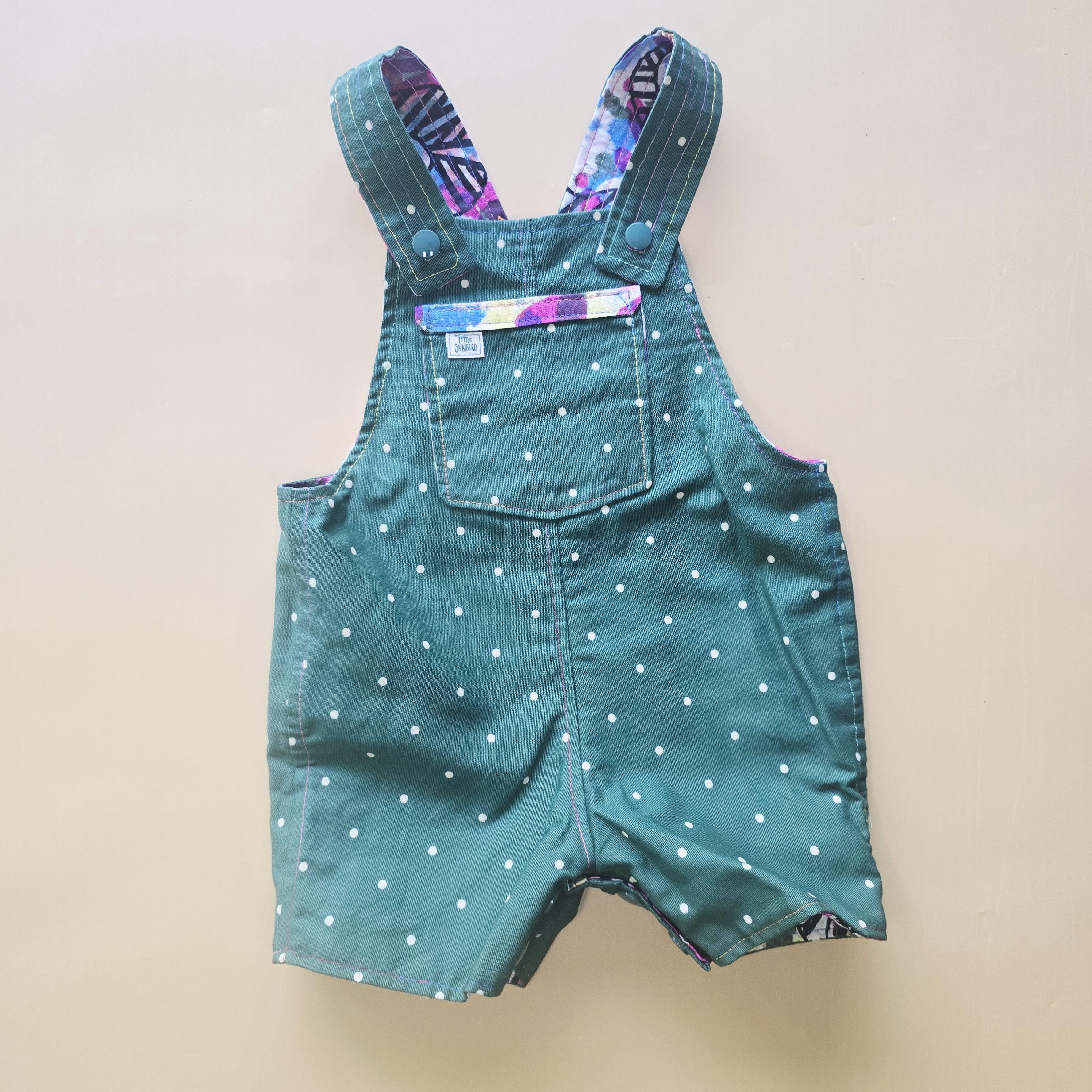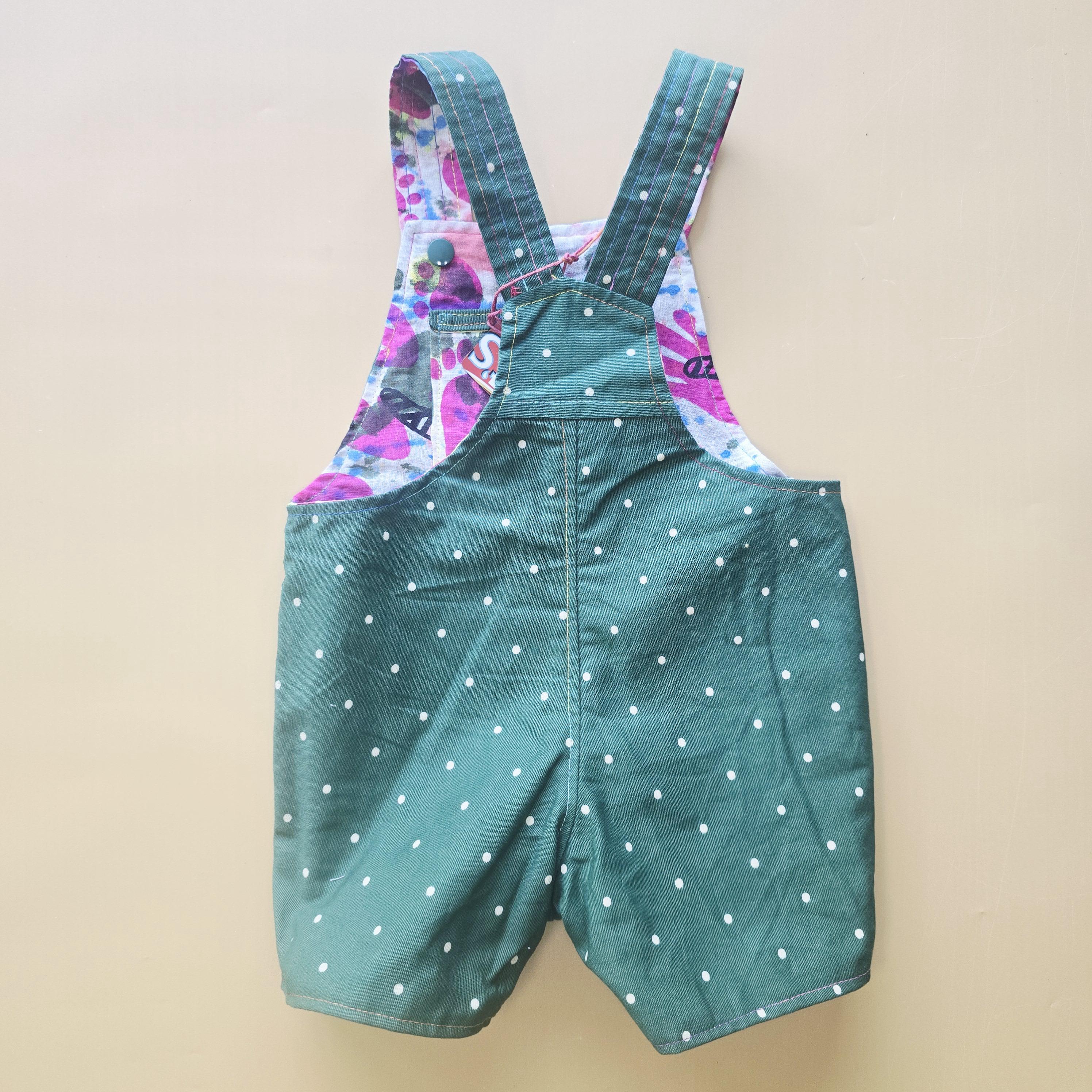 3M 031- Reversible baby Overalls - vintage handpainted cotton and polkadot cotton