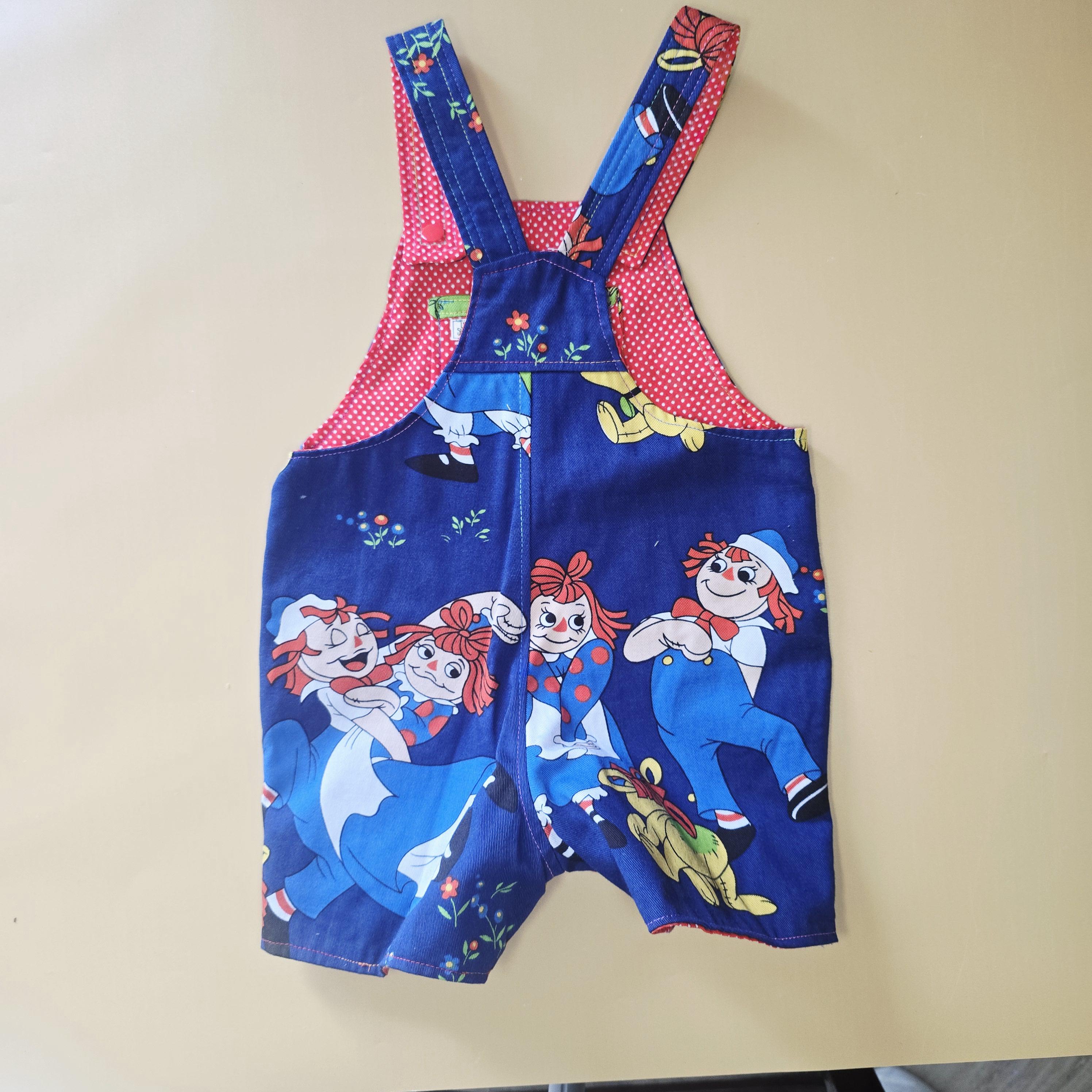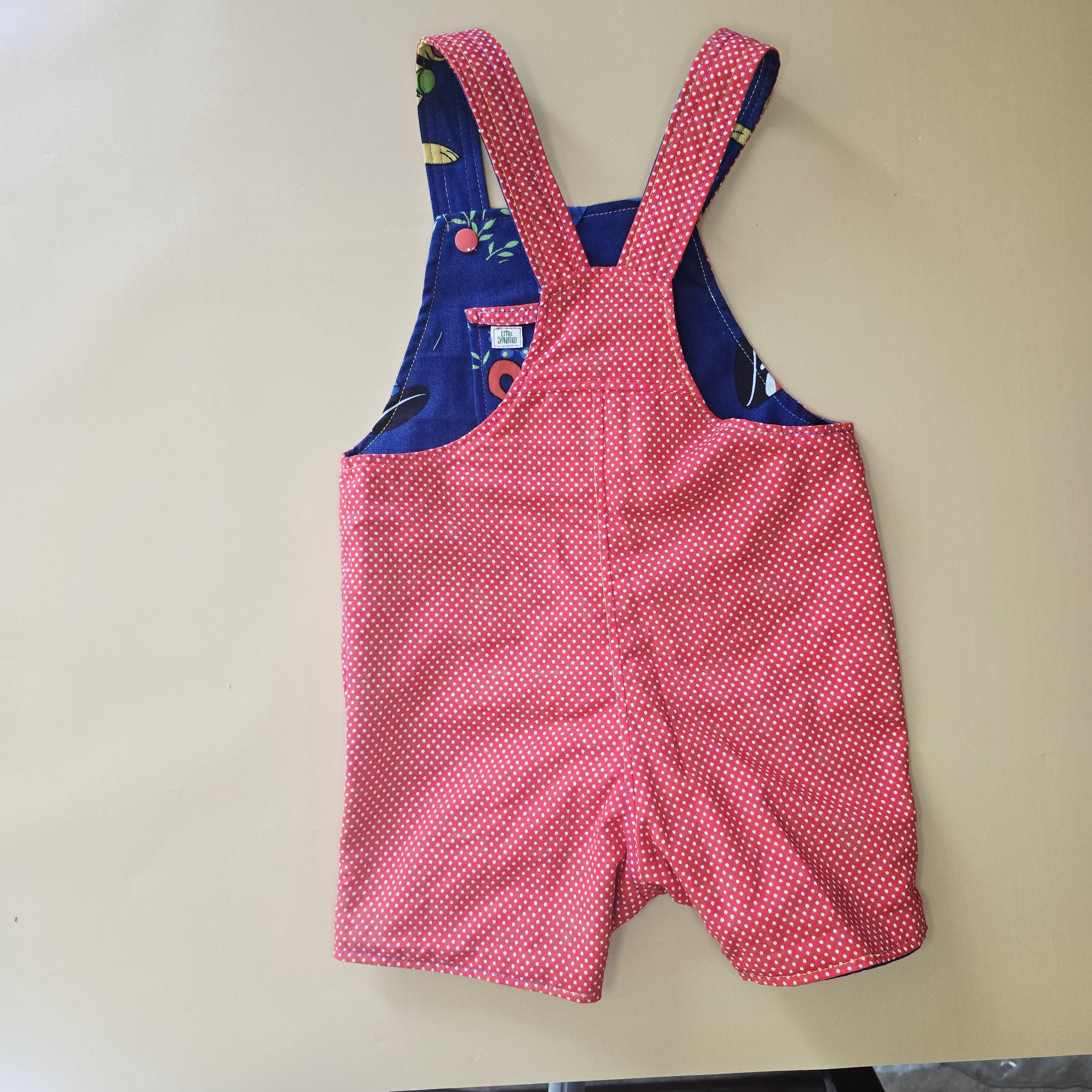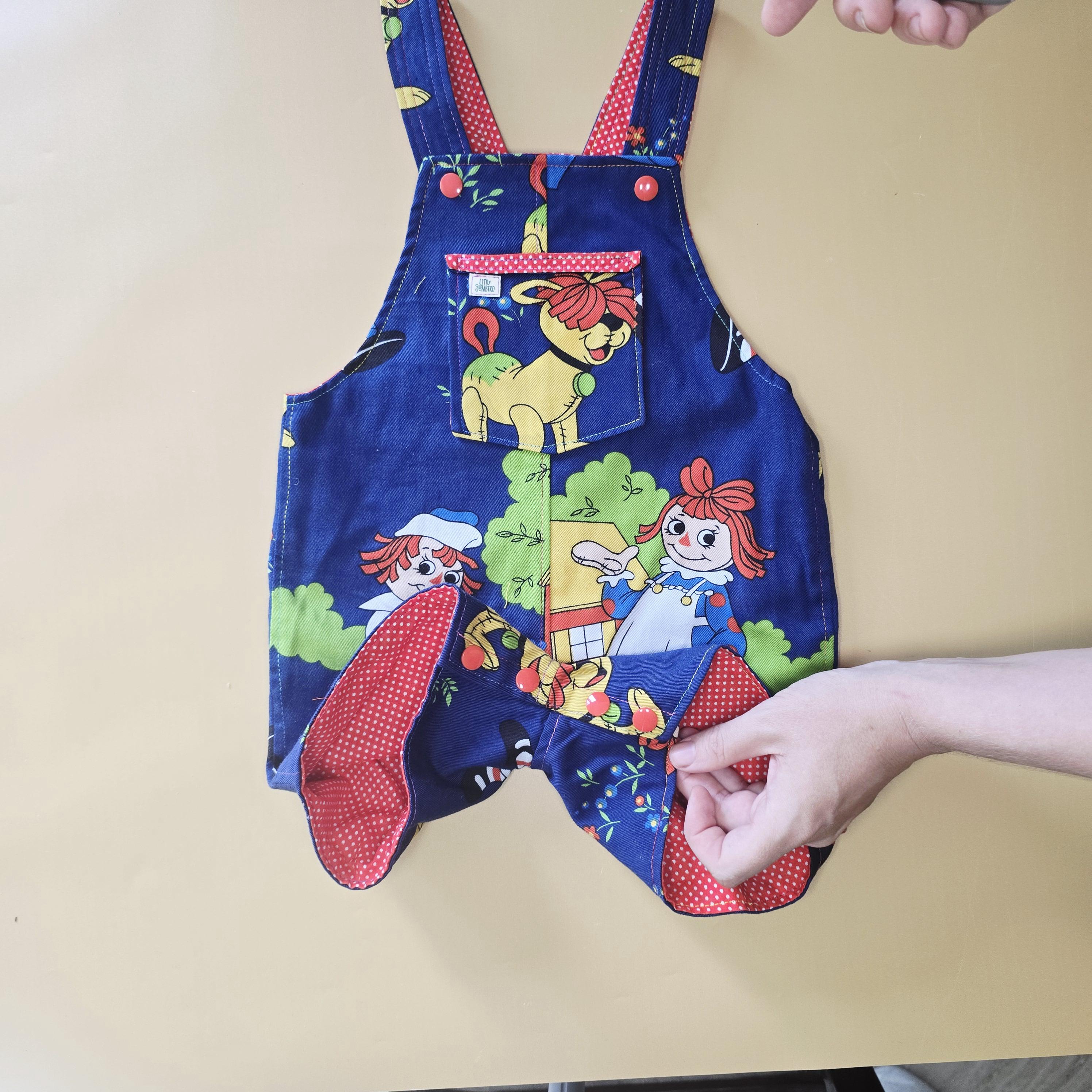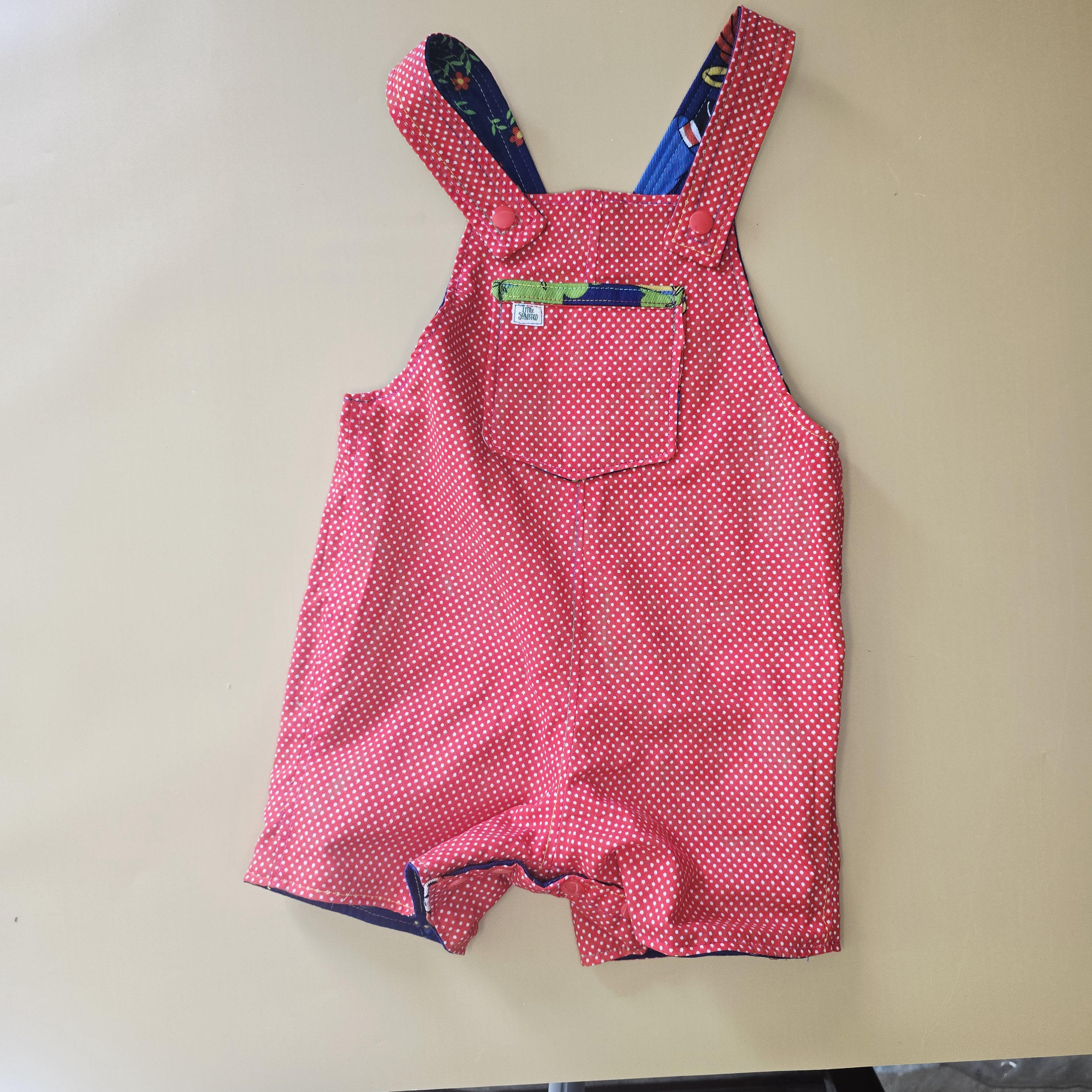 Shoulder straps with snaps, a front pocket, and nappy snaps for quick changes. Handmade for comfort, character, and a wink of absurdity.
