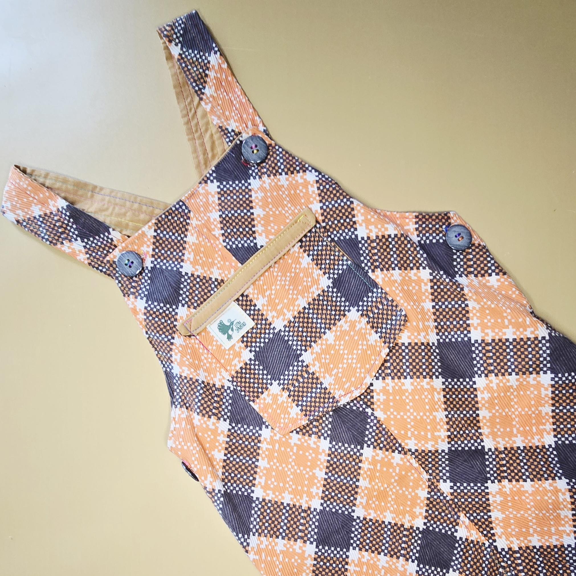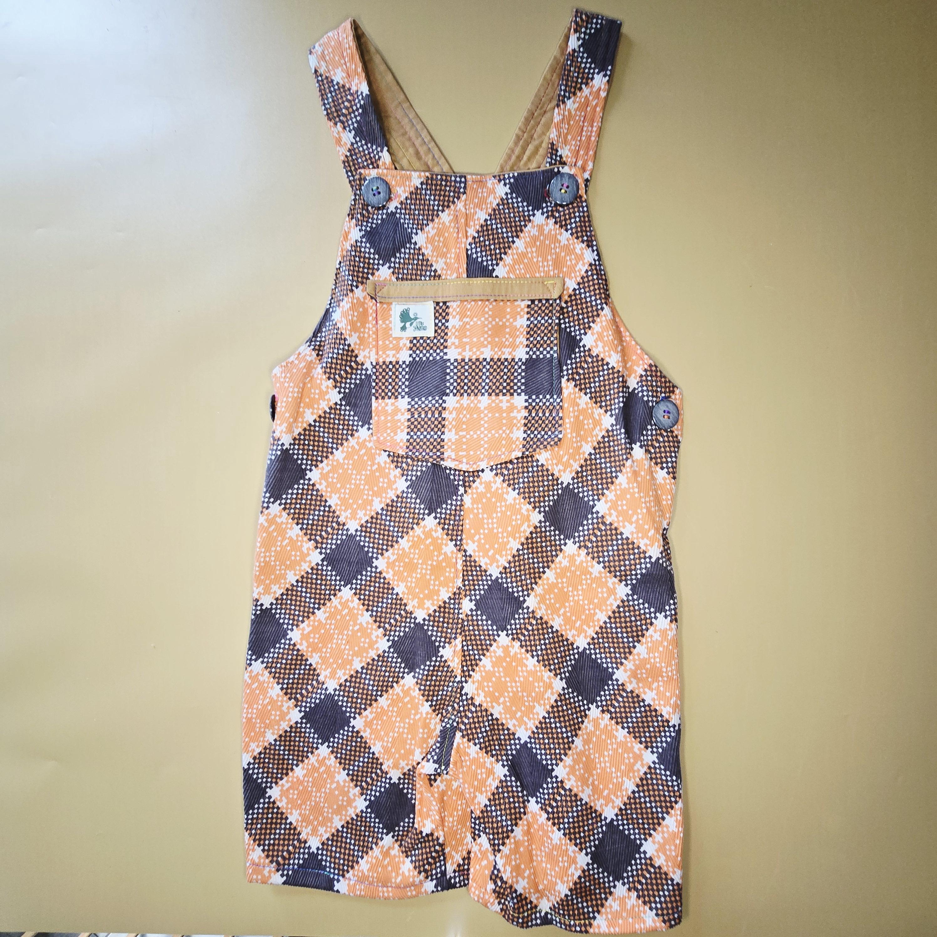 Size 3 year overalls, hand made in australia using a great quality textured vintage cotton remnant.