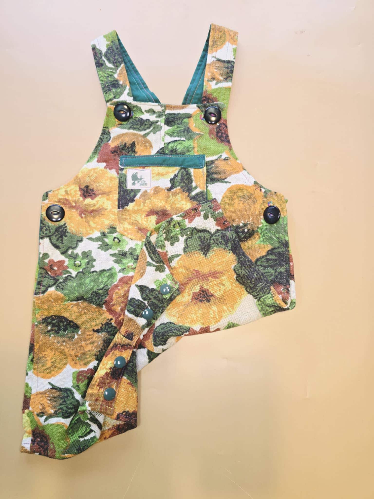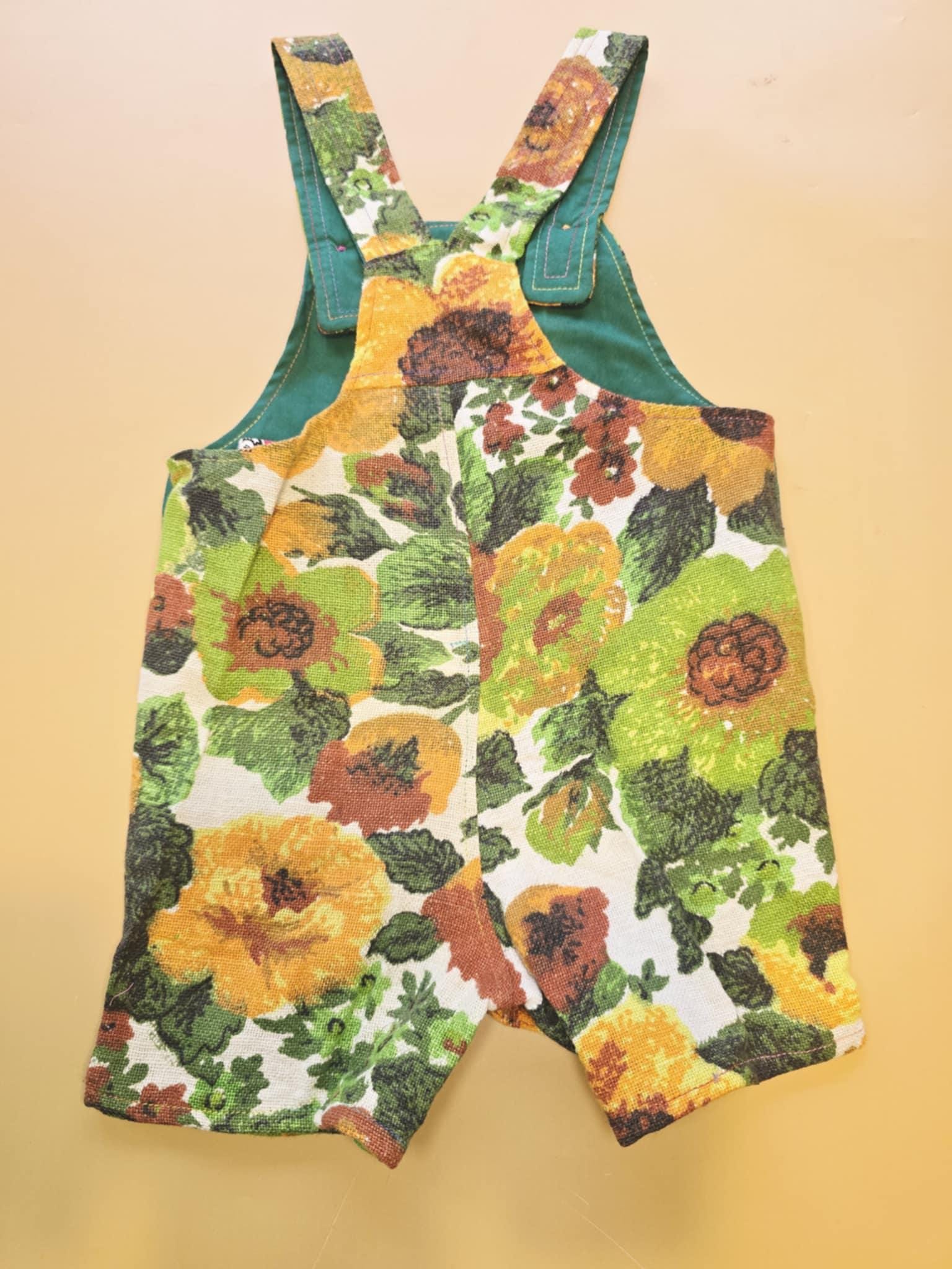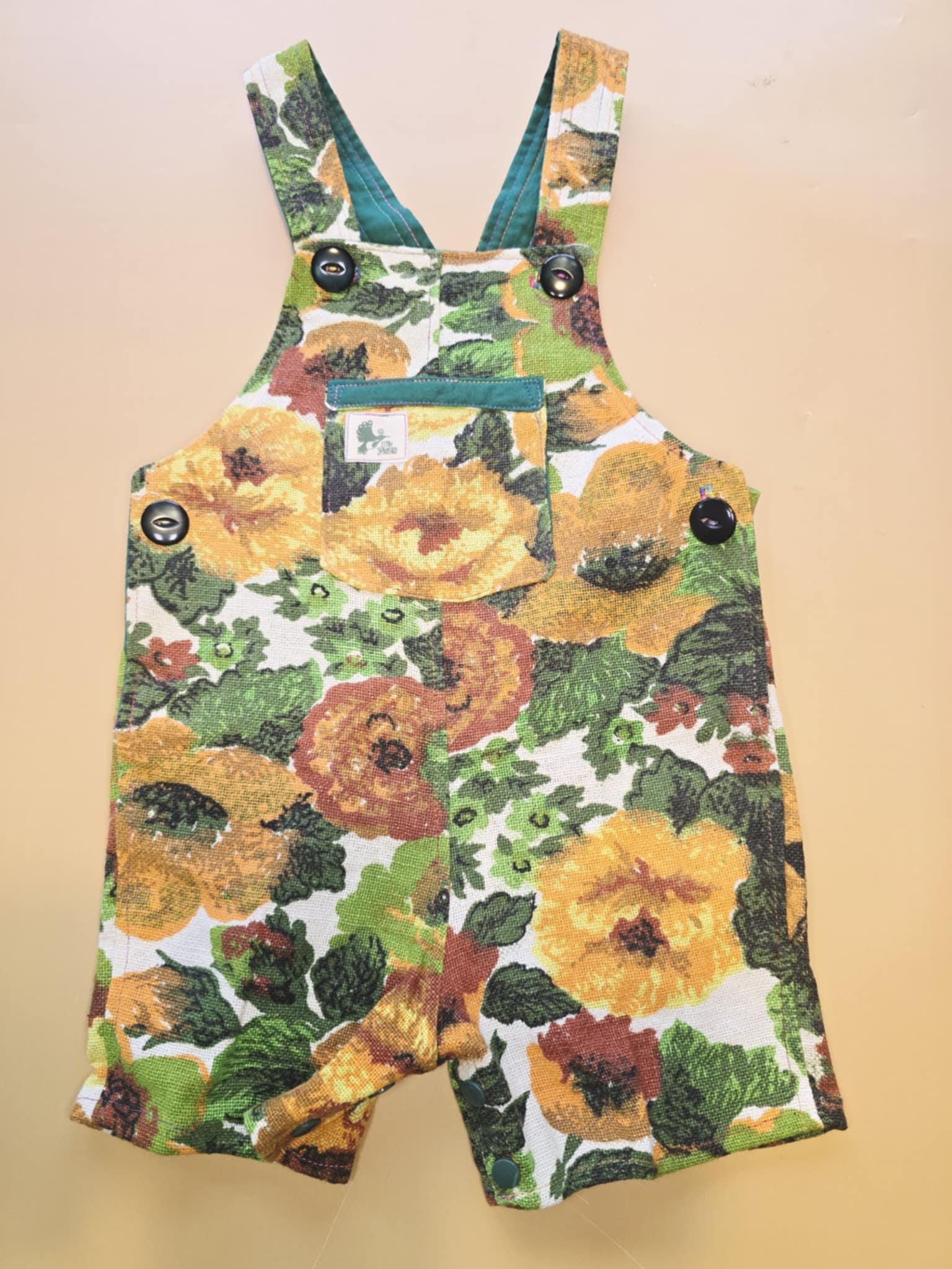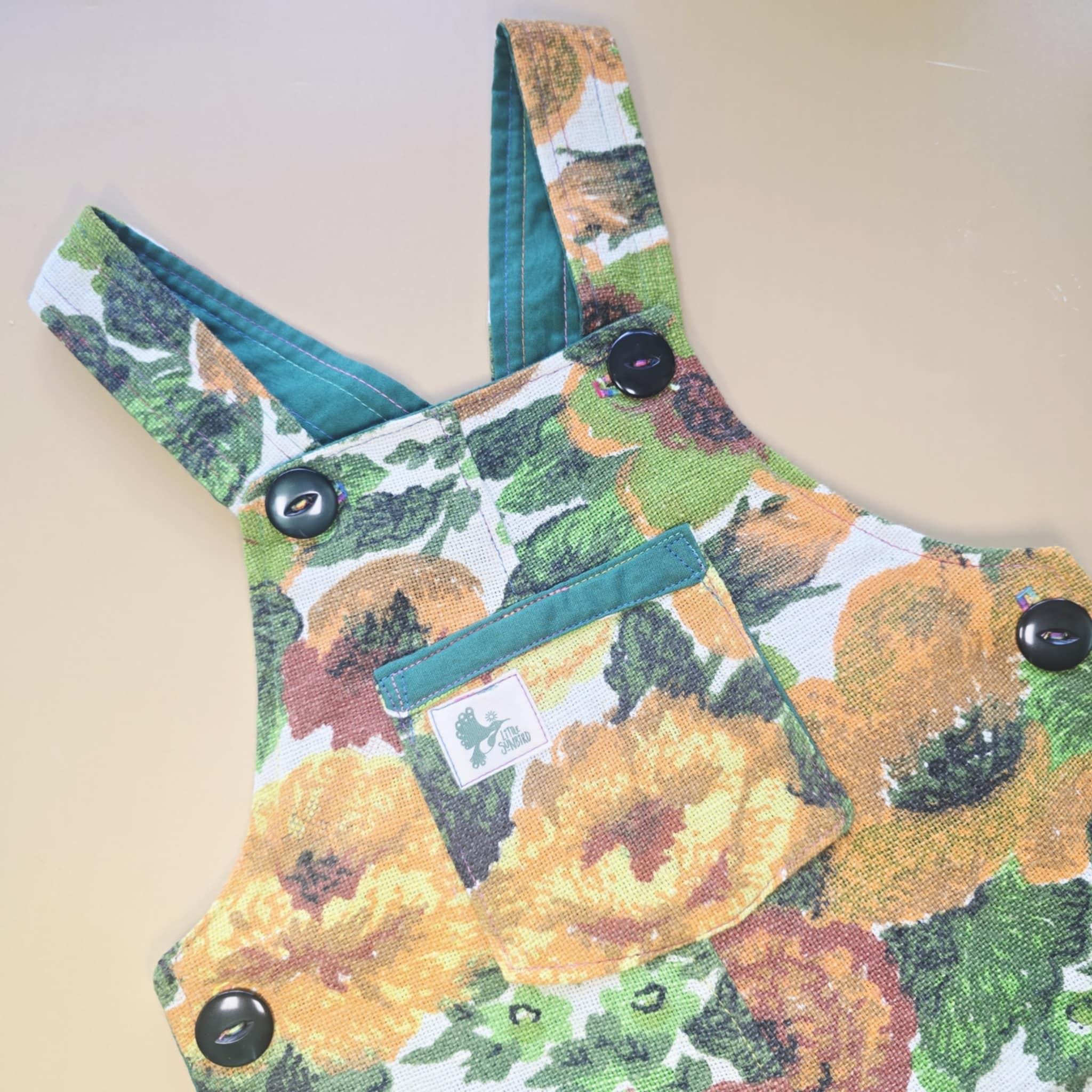 These adorable overalls are perfect for your little one. They are made with an upcycled Vintage cotton/linen cushion cover and feature convenient snaps for quick changes.