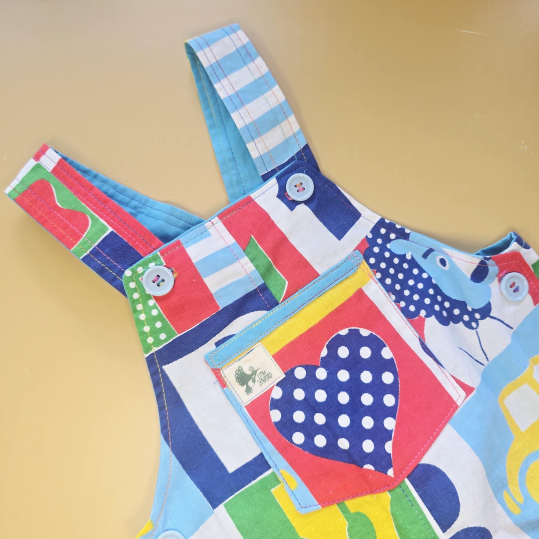 These adorable overalls are perfect for your little one. They are made with an upcycled Vintage Retro Bold cotton sheet and feature convenient snaps for quick changes.