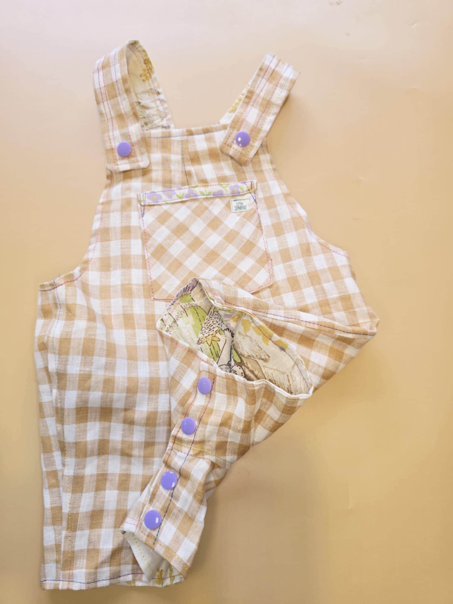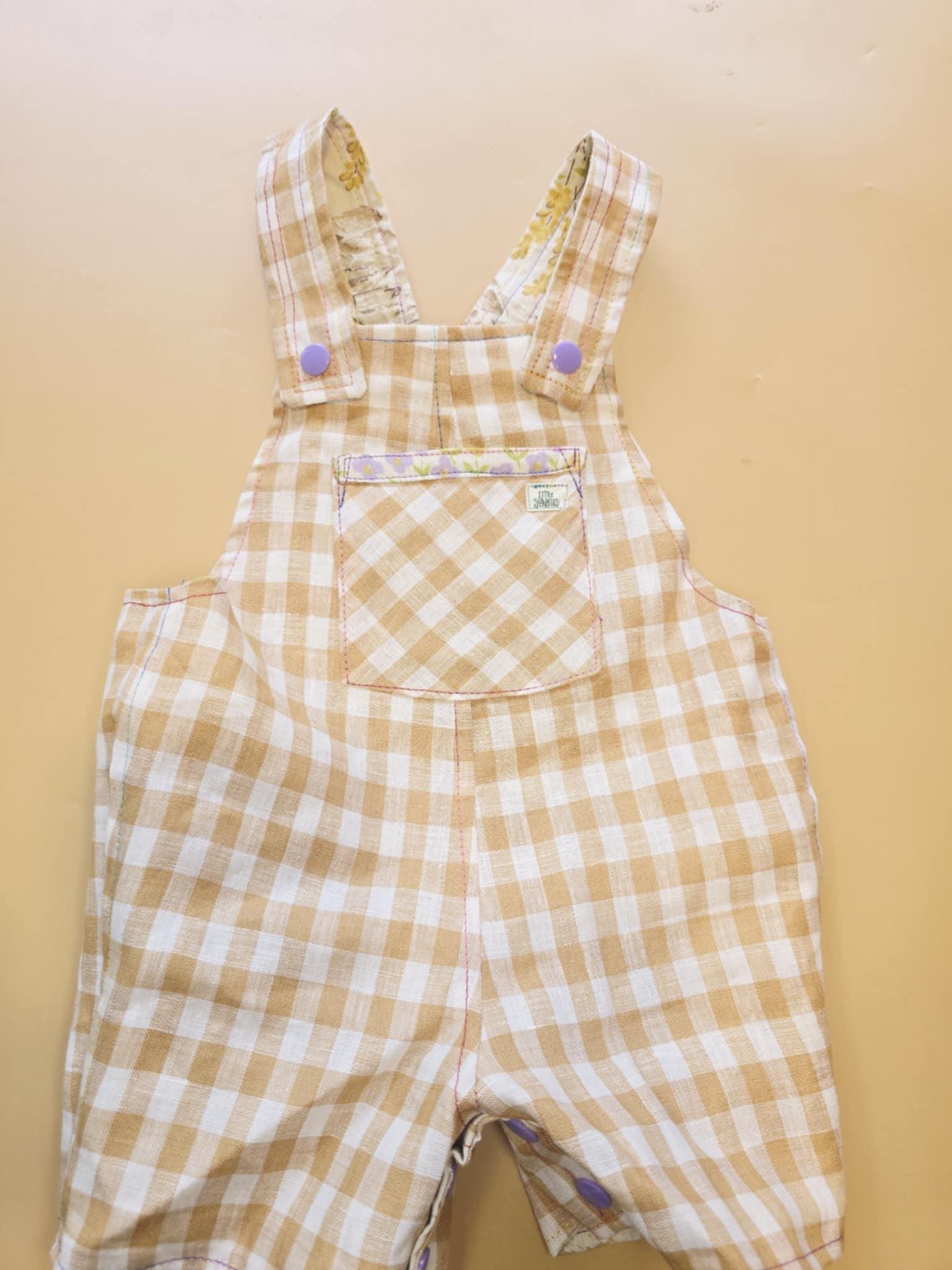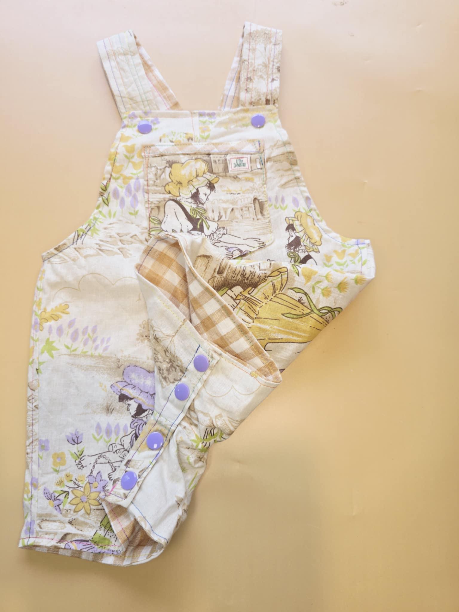 3M 120- Reversible baby Overalls - vintage cotton pillowcase and linen remnant