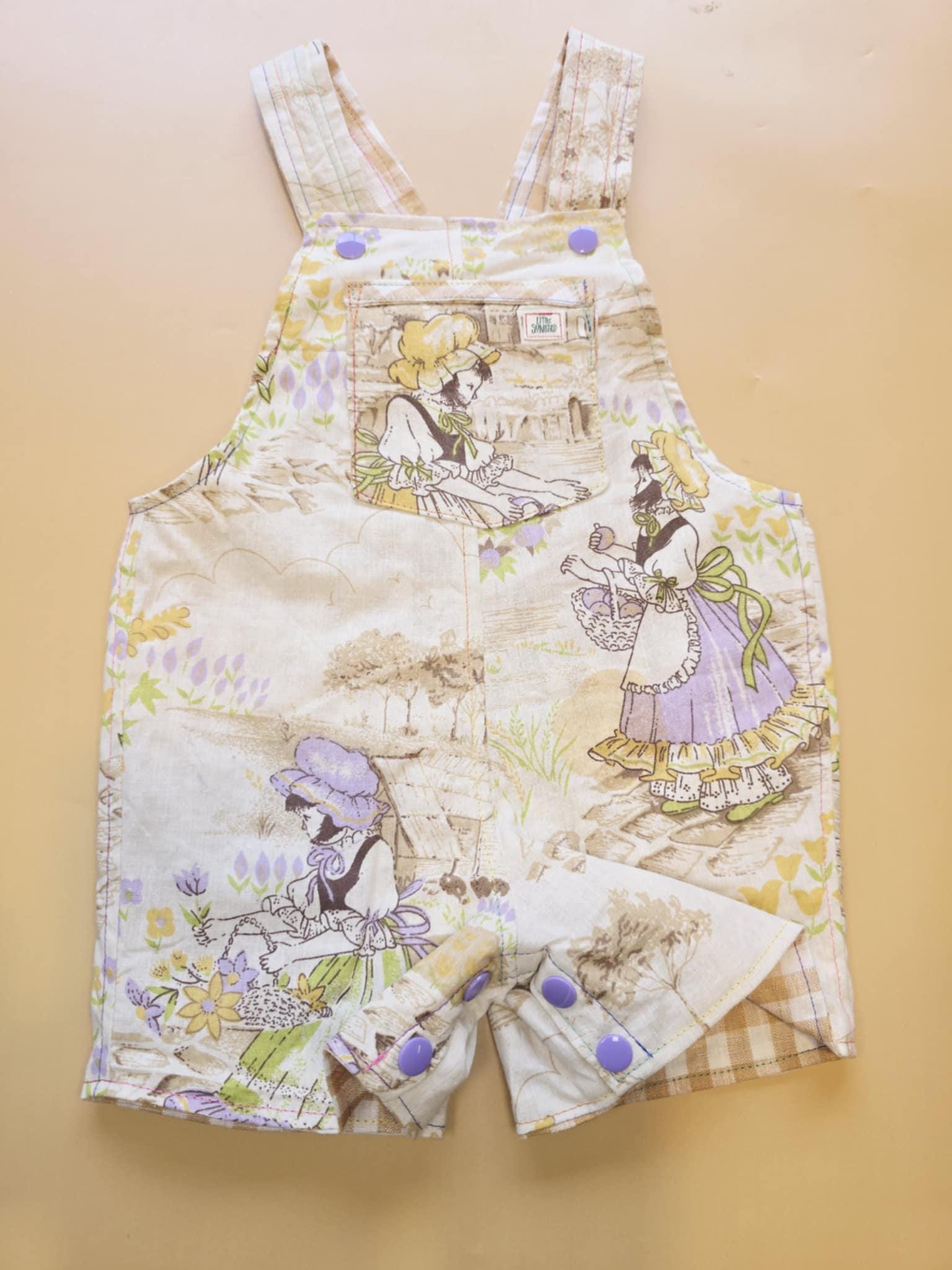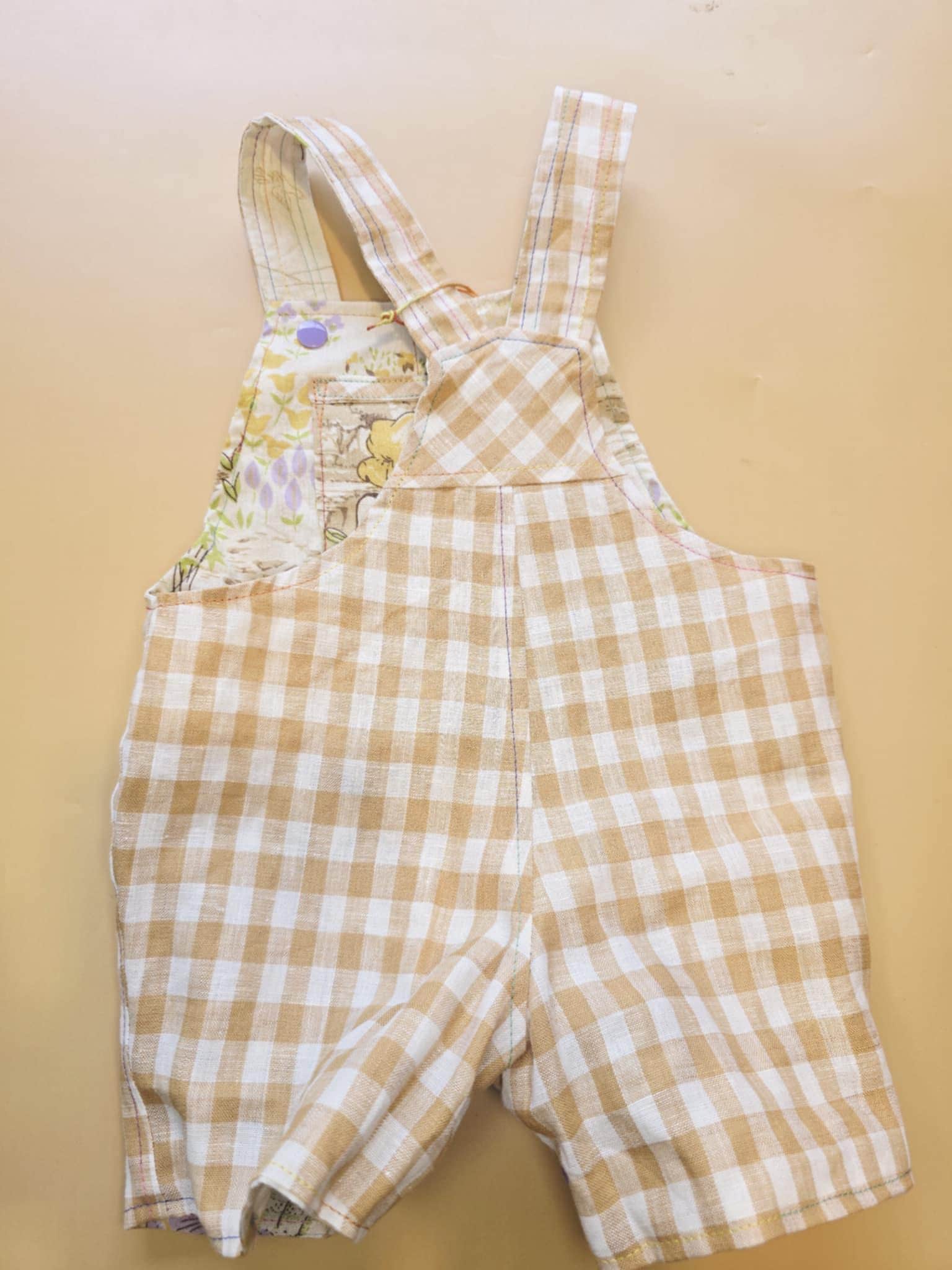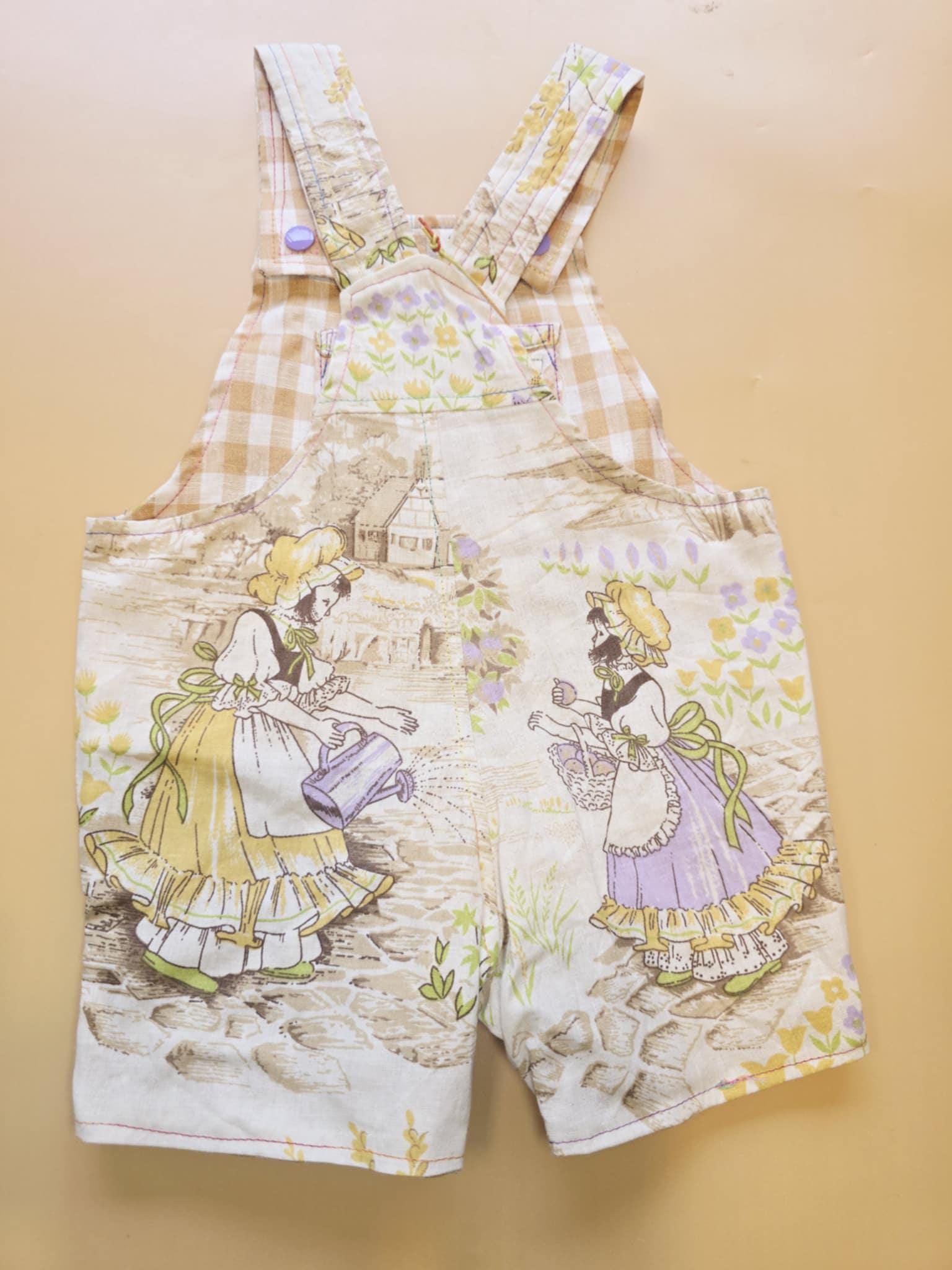 3M 120- Reversible baby Overalls - vintage cotton pillowcase and linen remnant