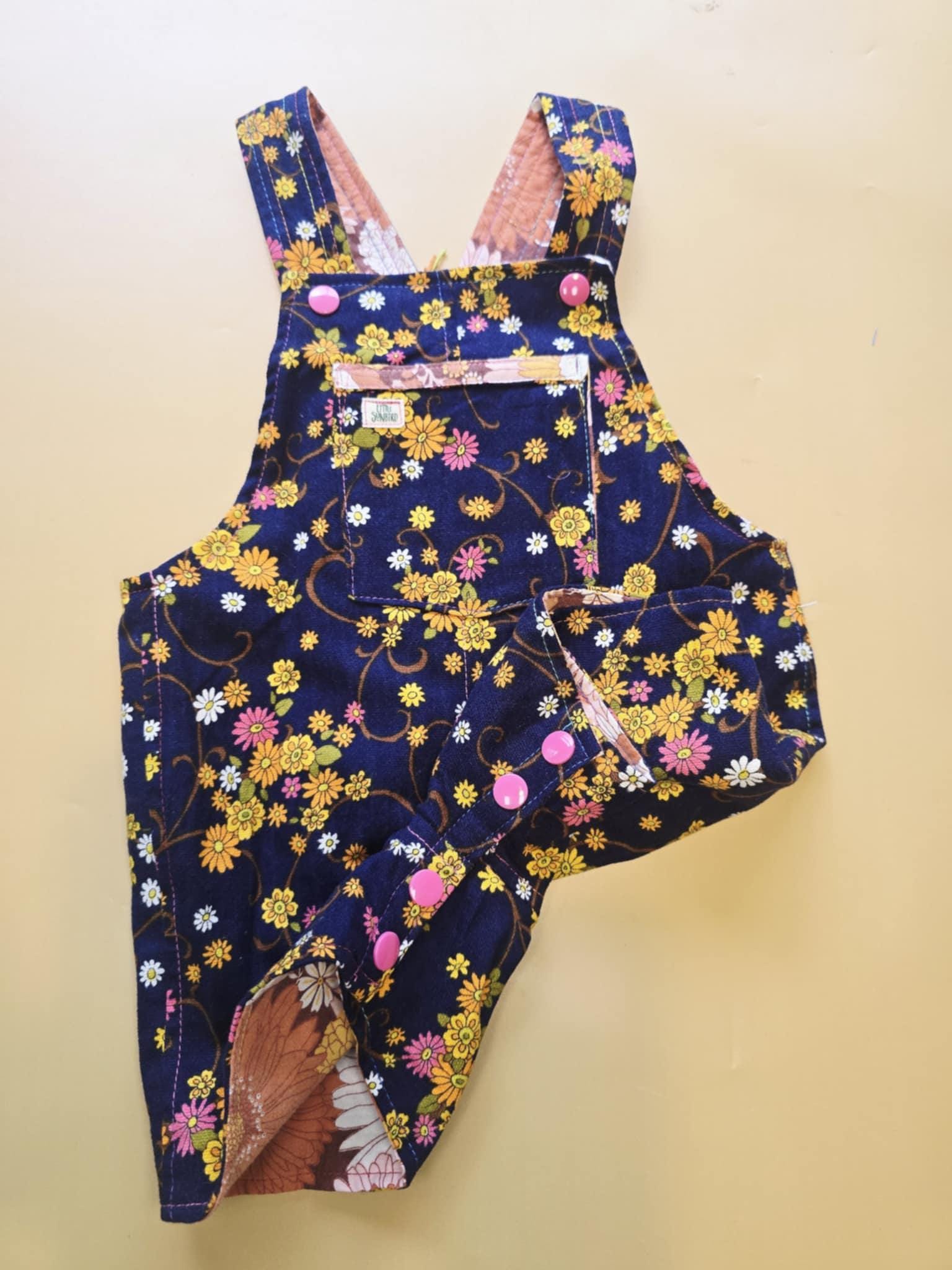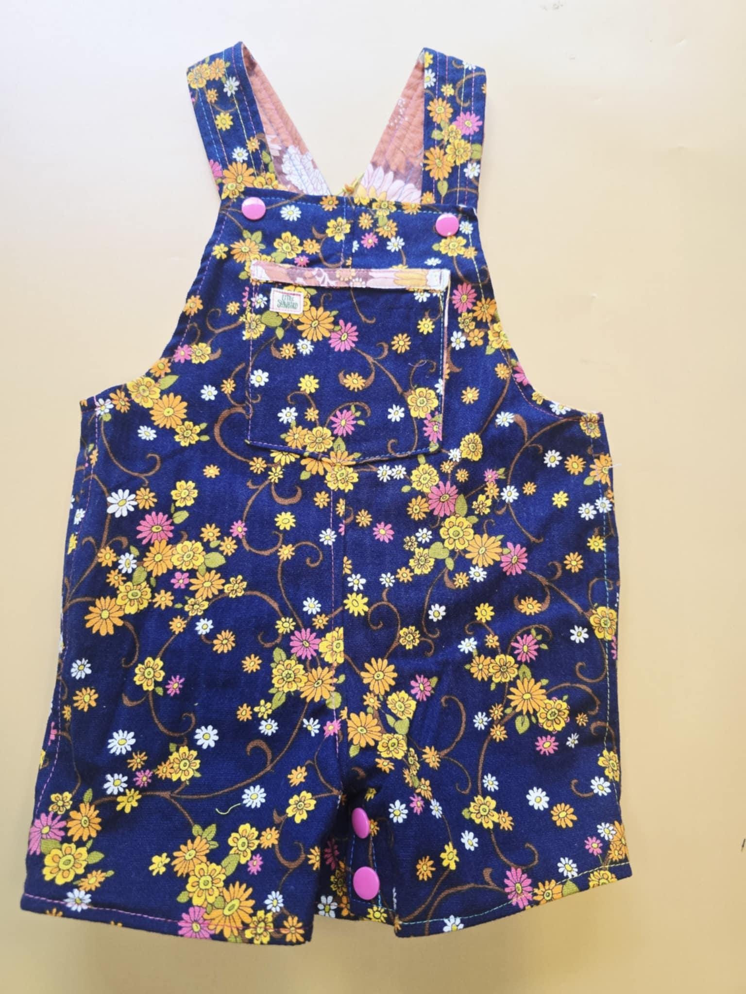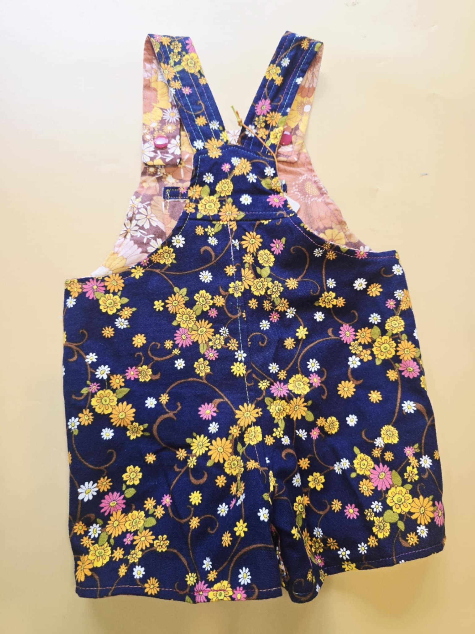3M 119- Reversible baby Overalls - upcycled vintage cotton sheet and vintage skirt