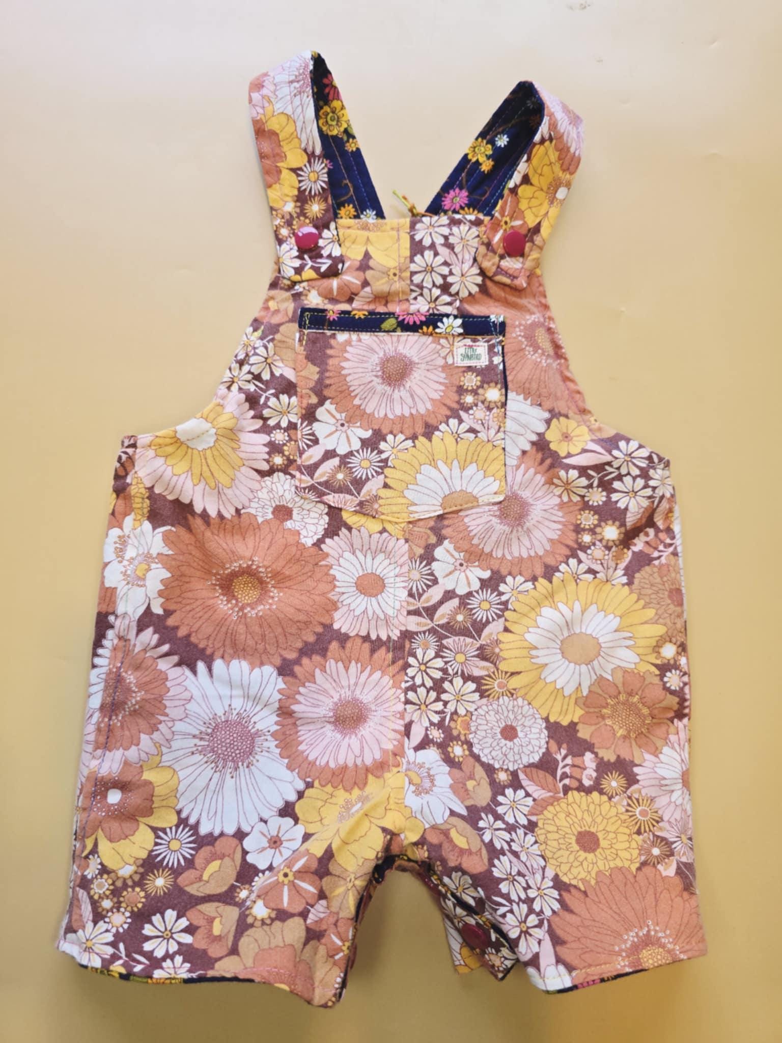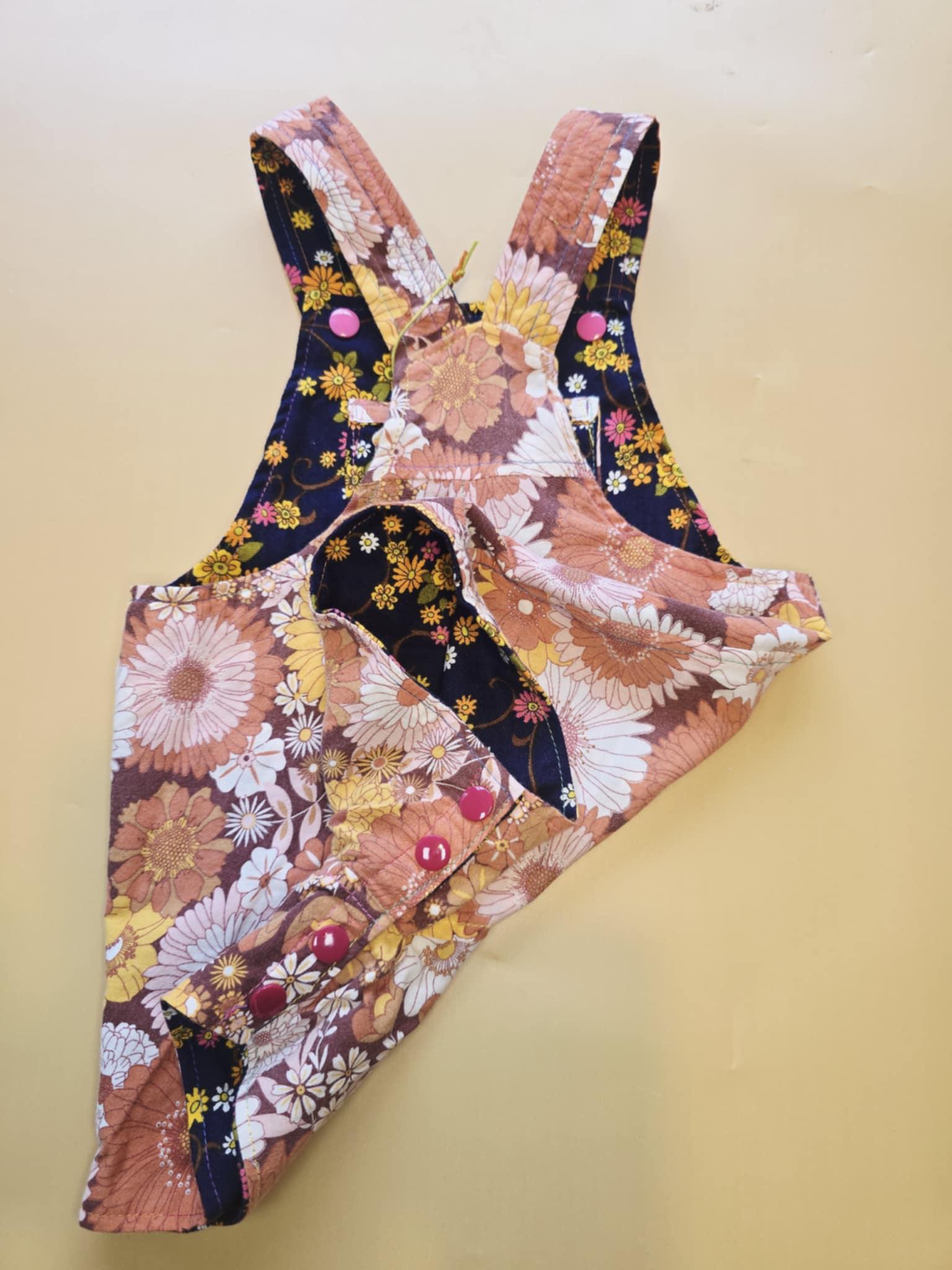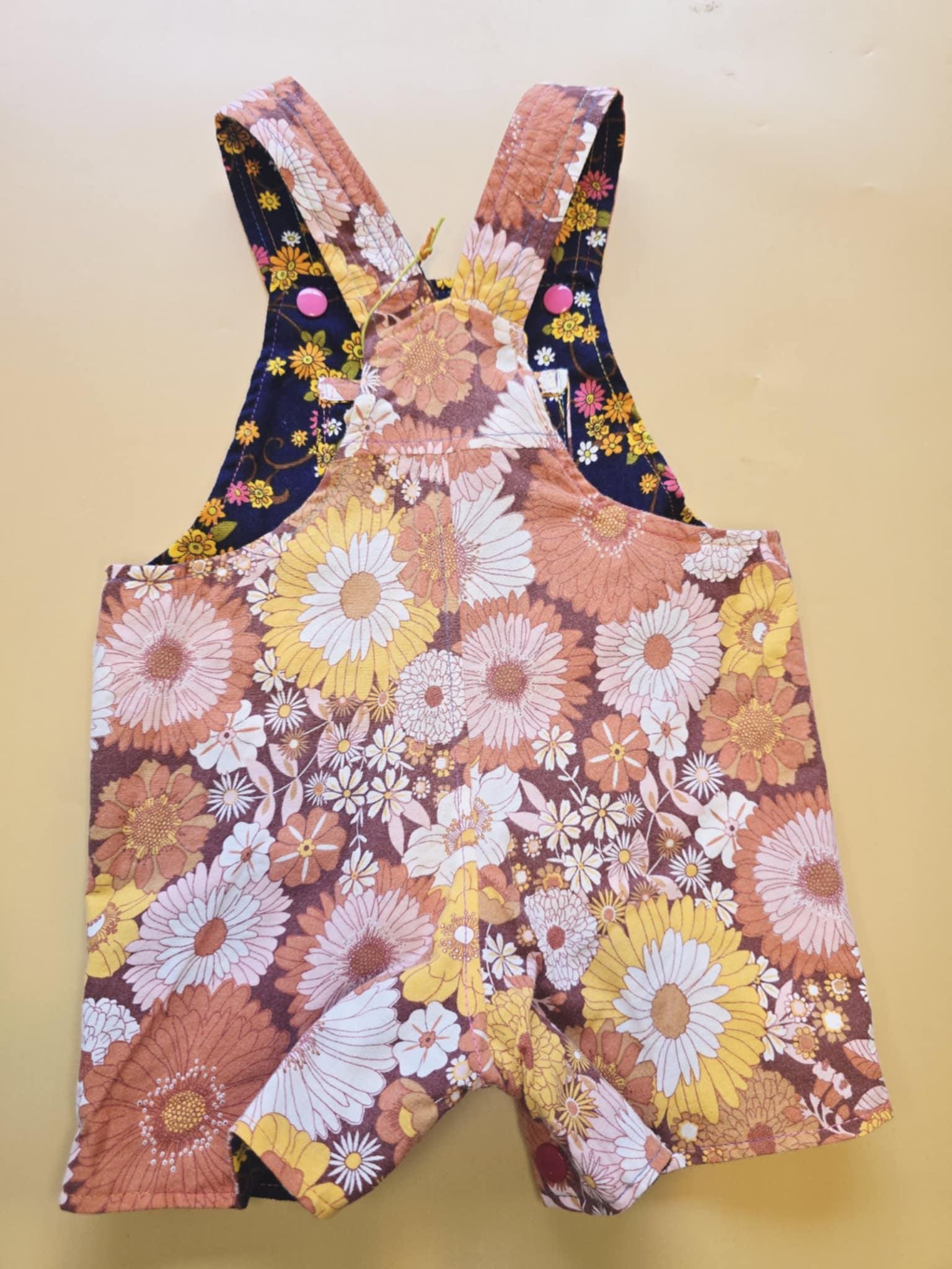 3M 119- Reversible baby Overalls - upcycled vintage cotton sheet and vintage skirt
