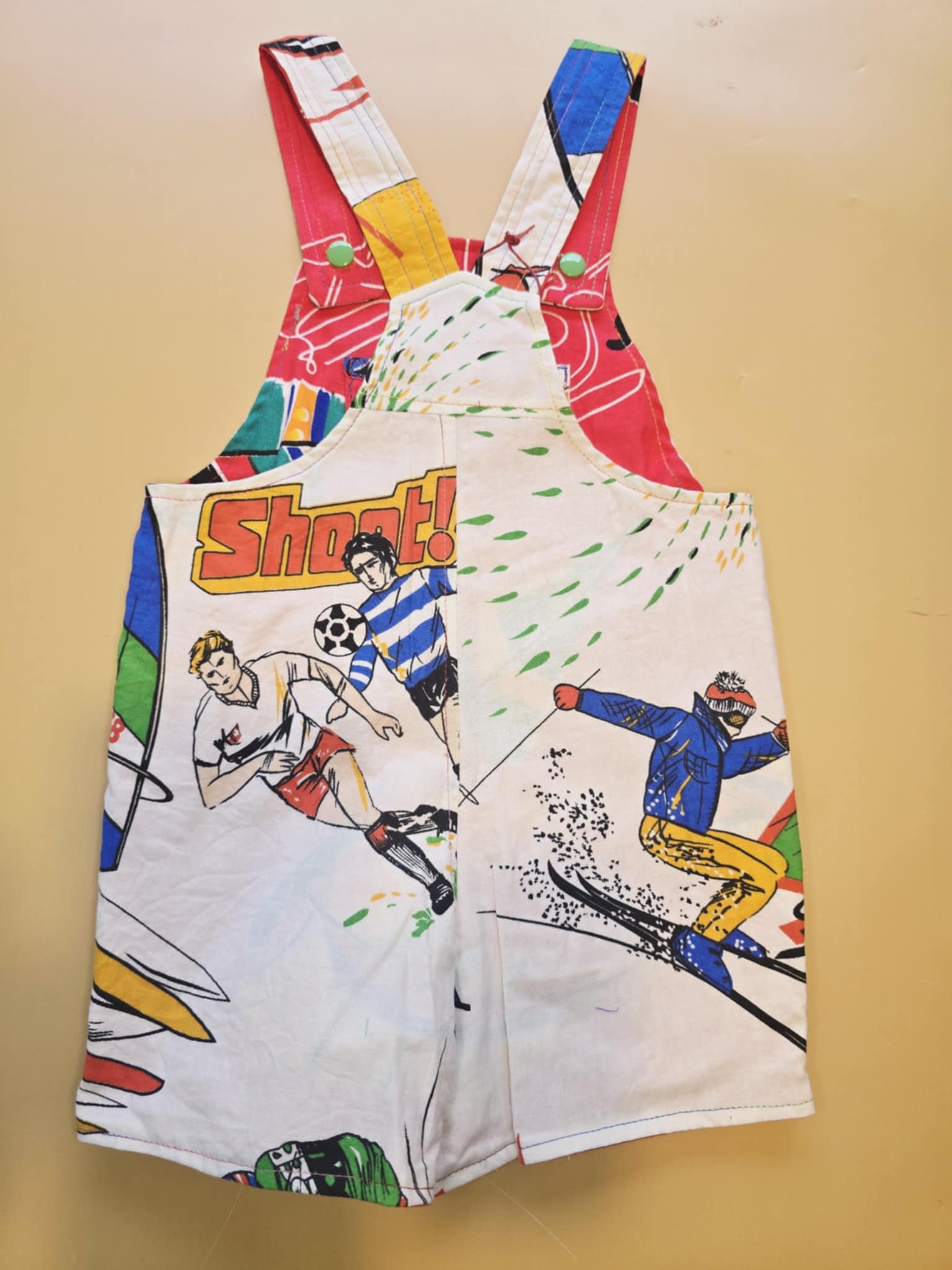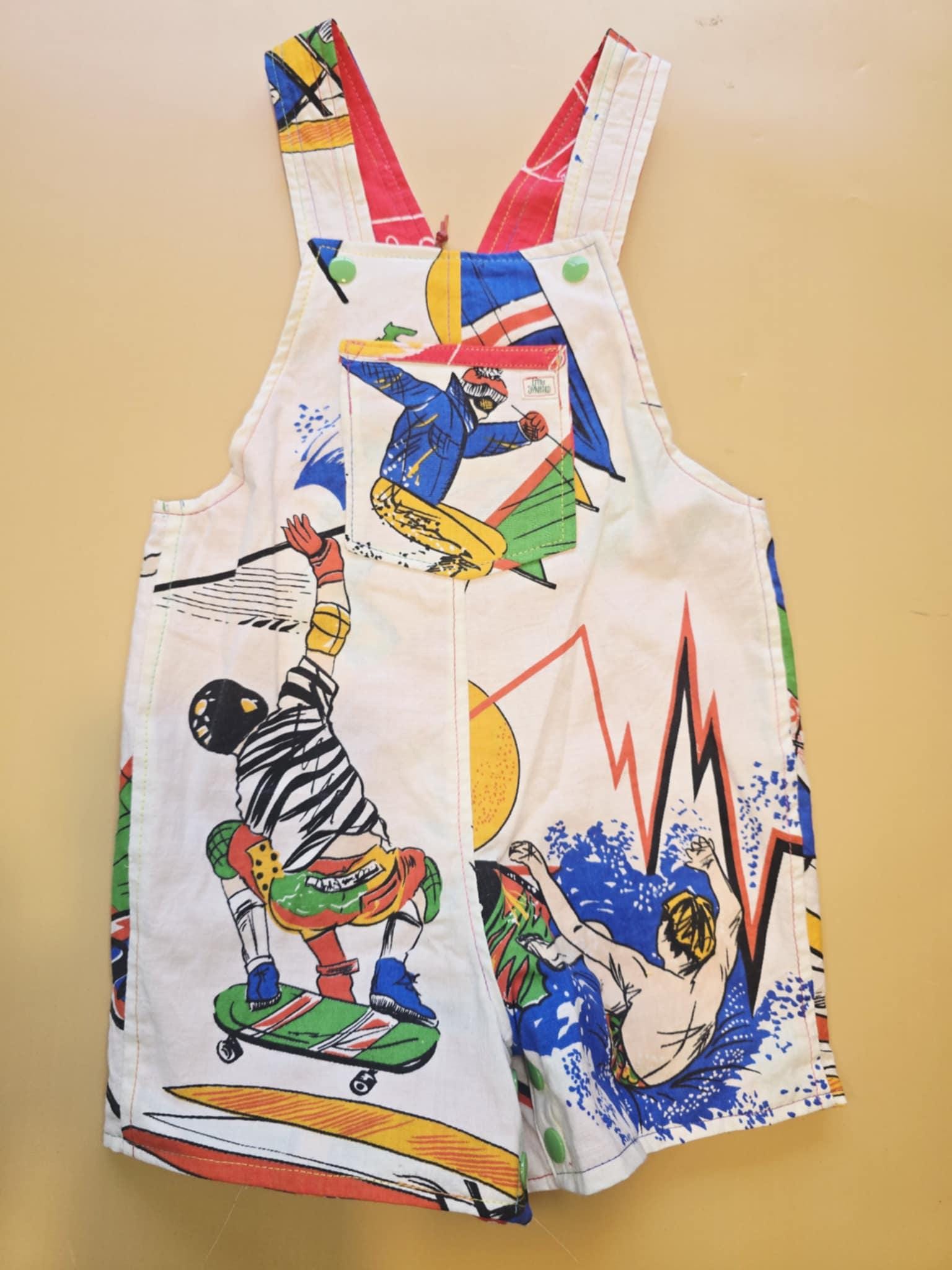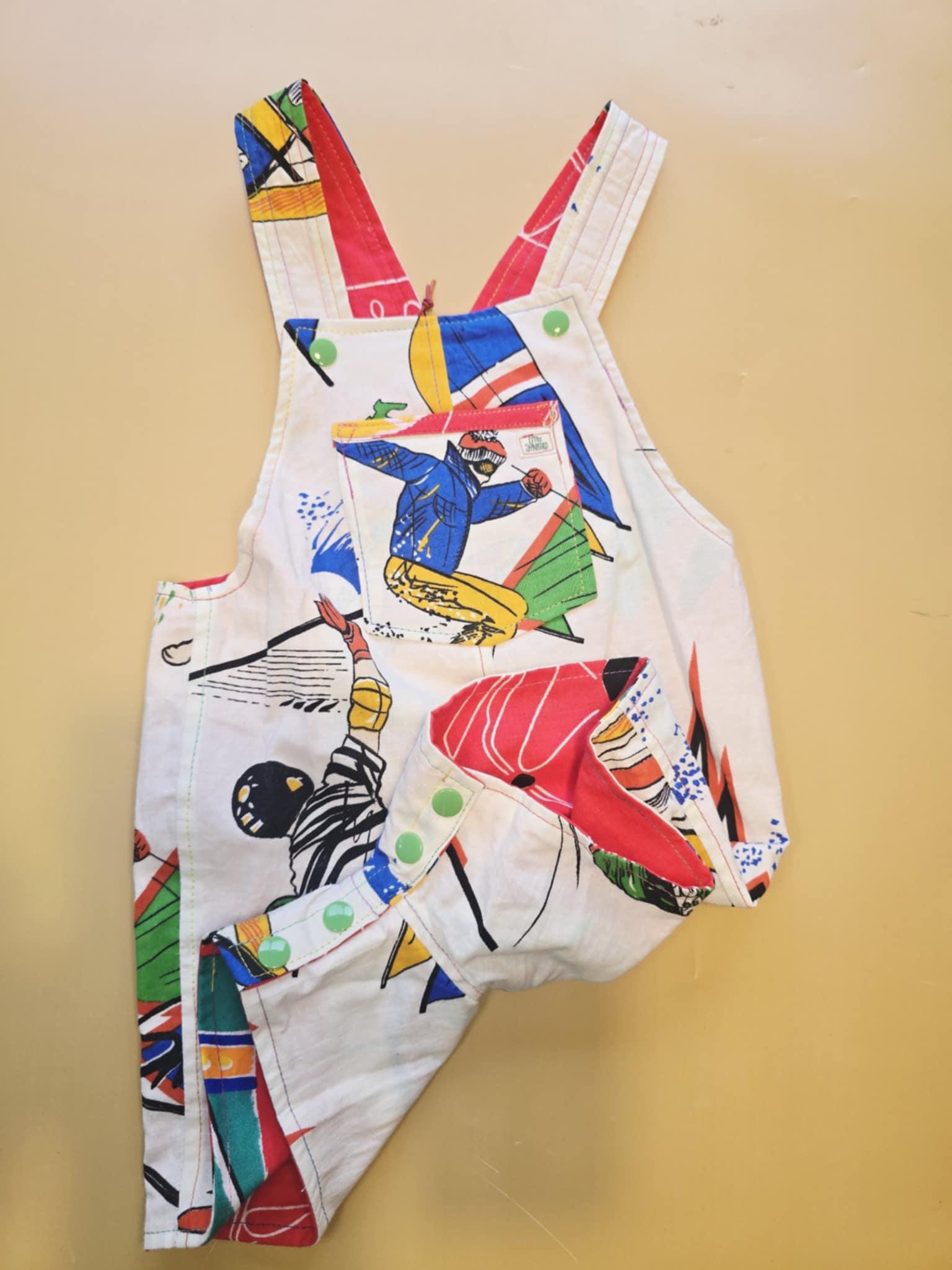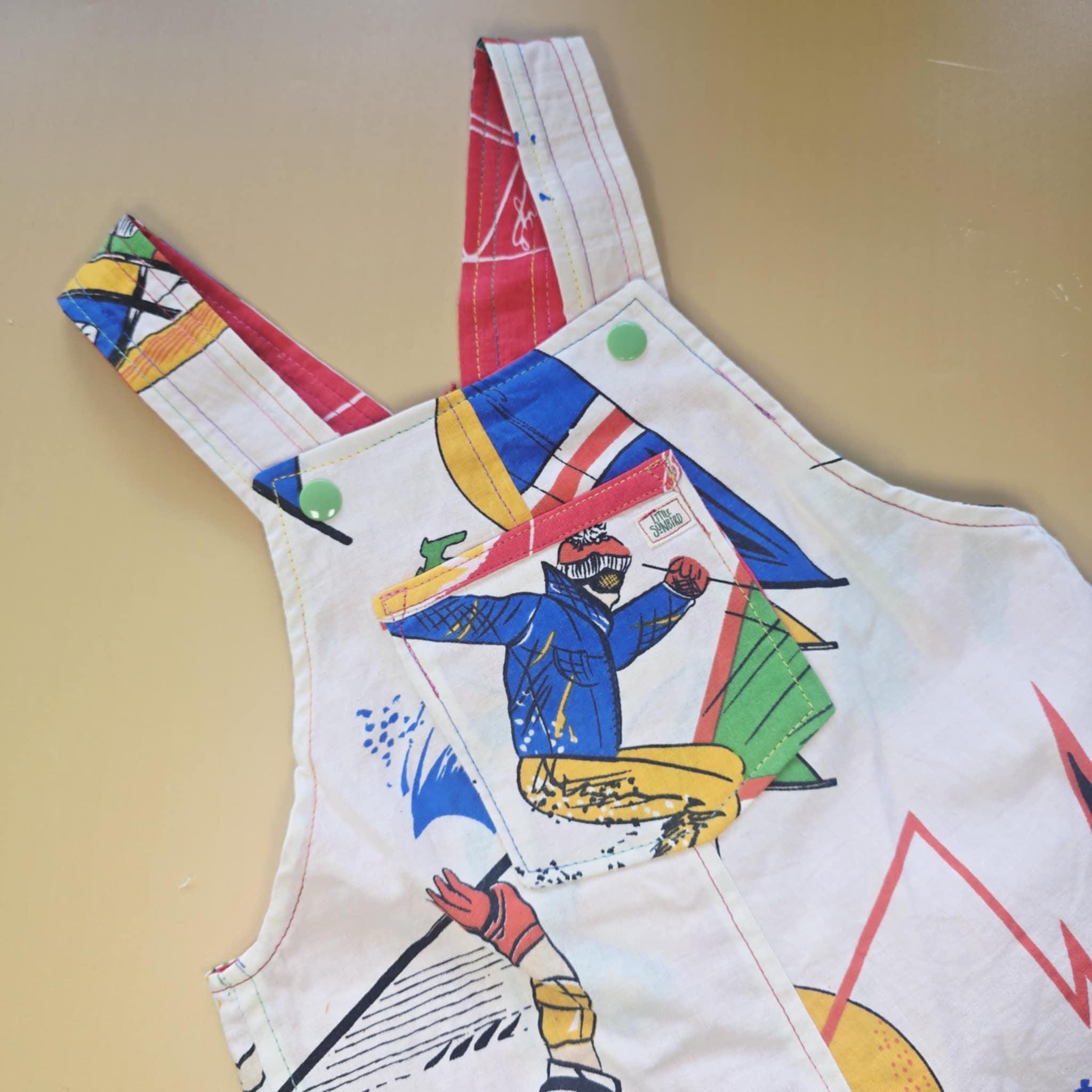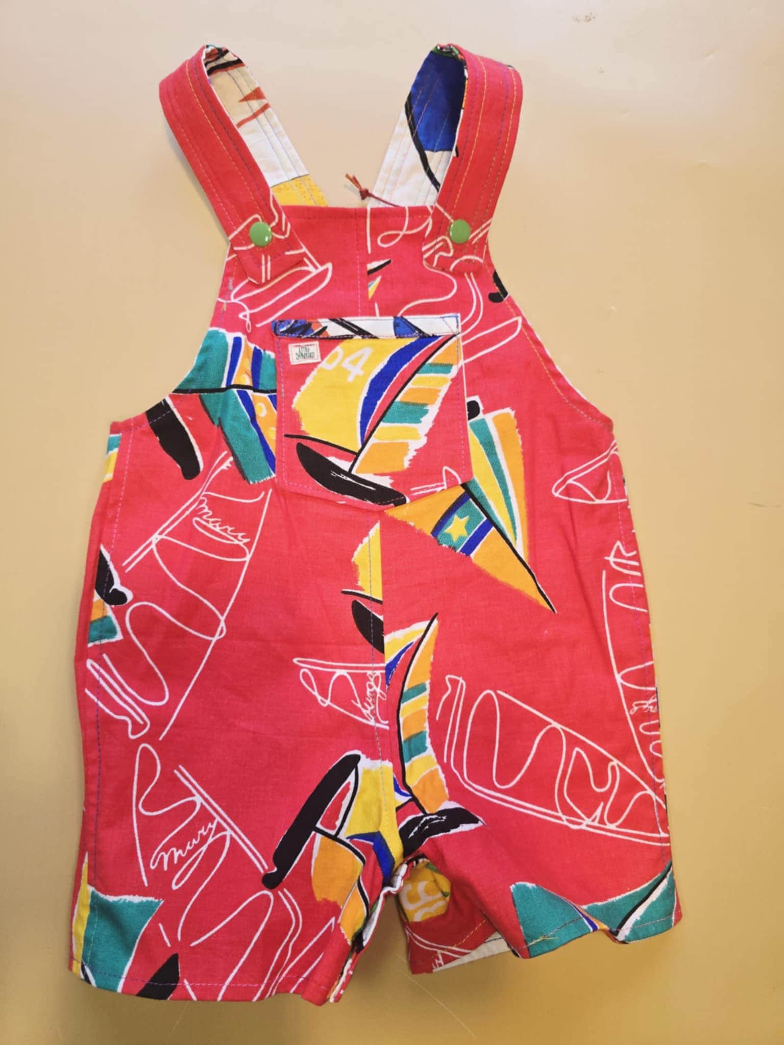 Reversible Baby Overalls (9-12 Months) โ Upcycled Vintage Sports & Boat Print