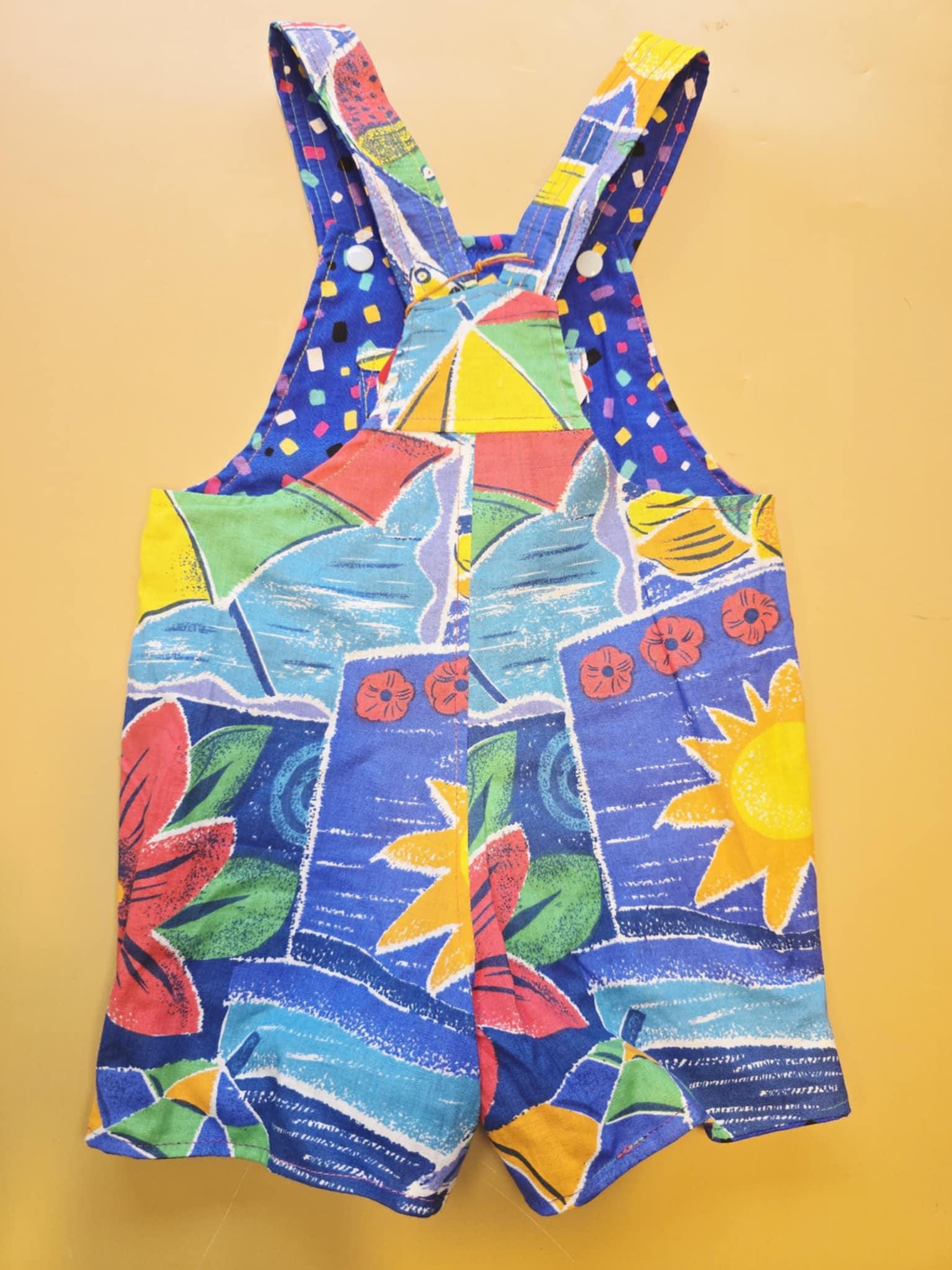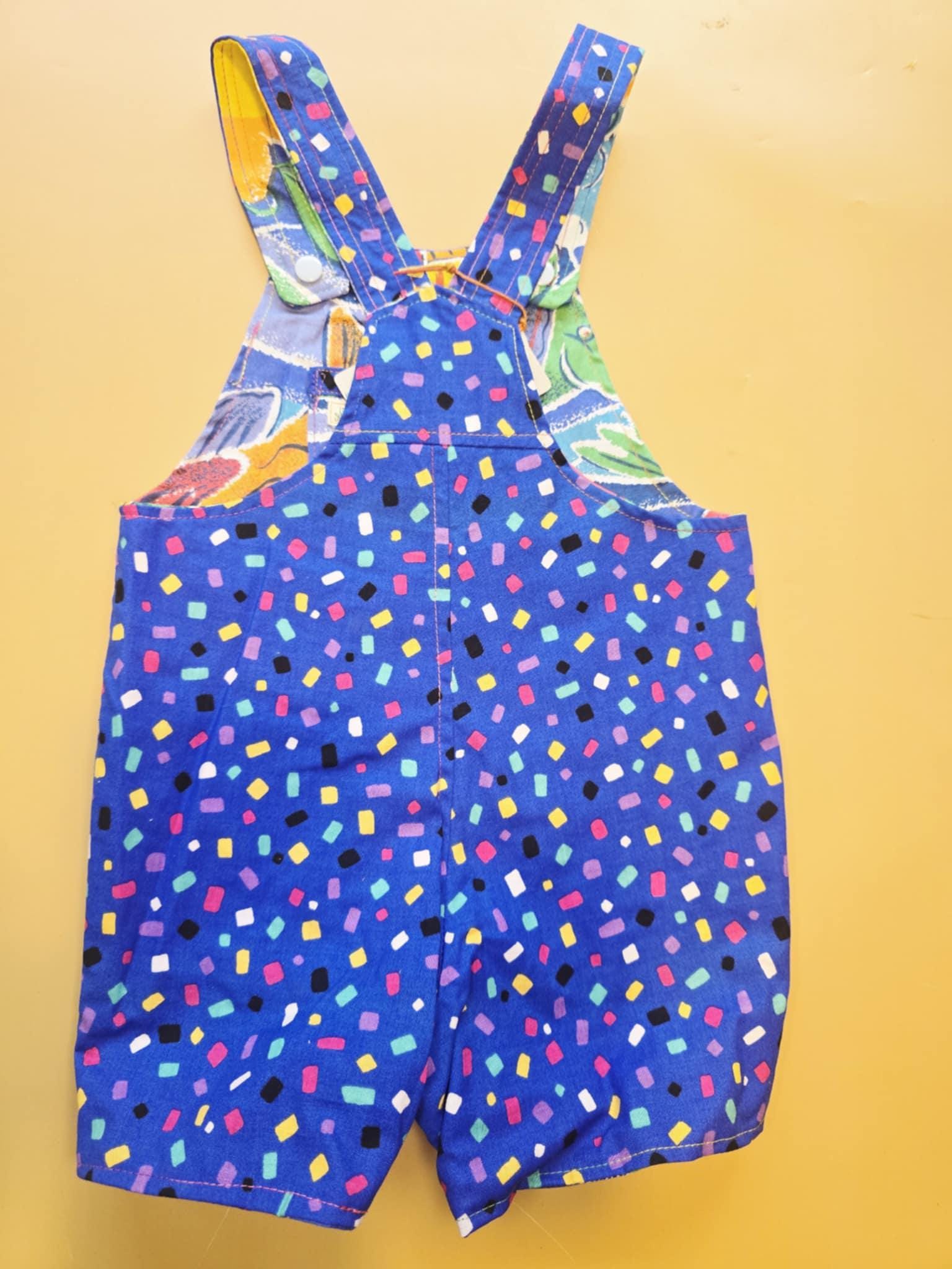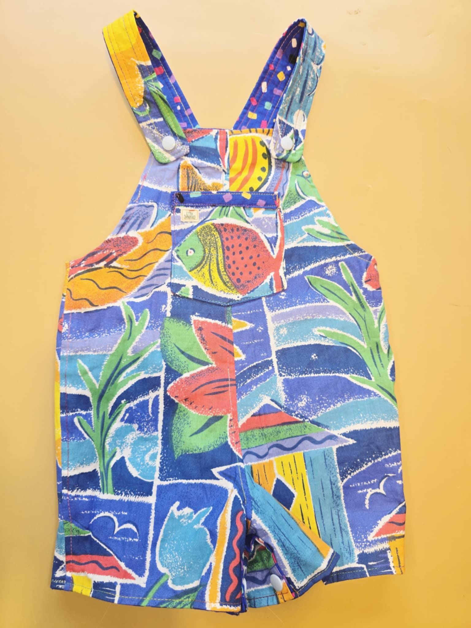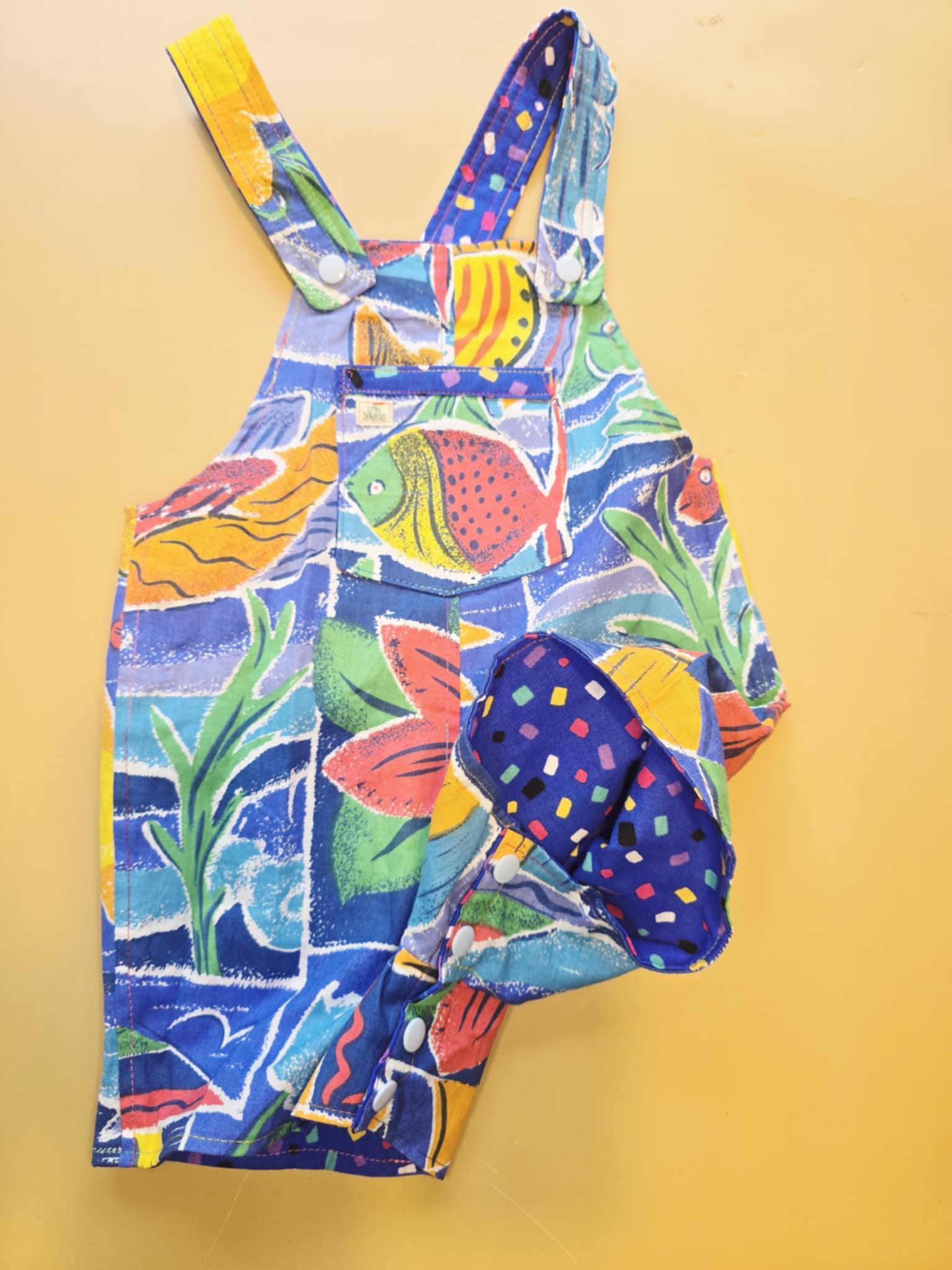 Reversible Baby Overalls (9-12 Months) โ Upcycled Vintage Cotton, Holiday Fish Theme