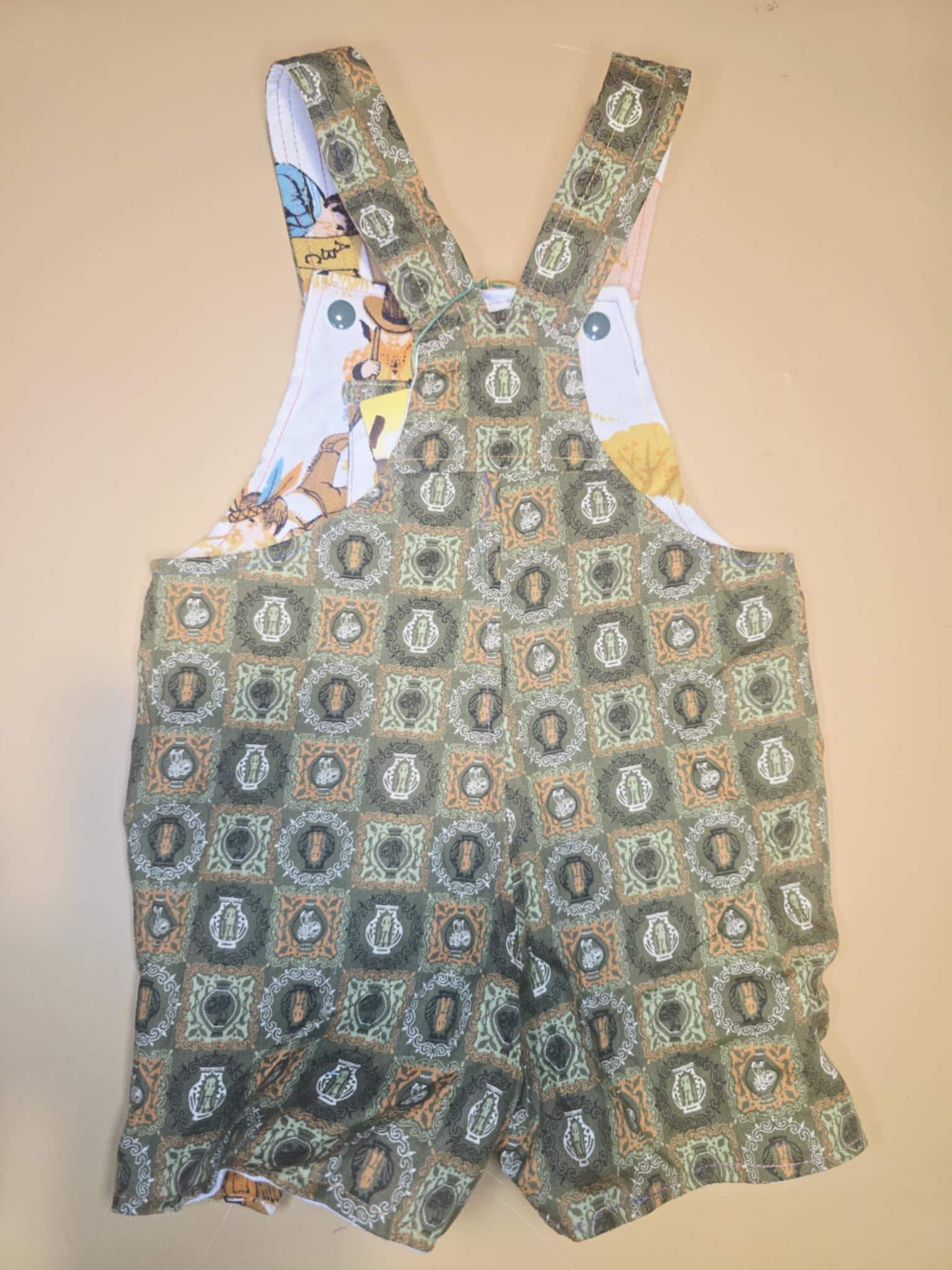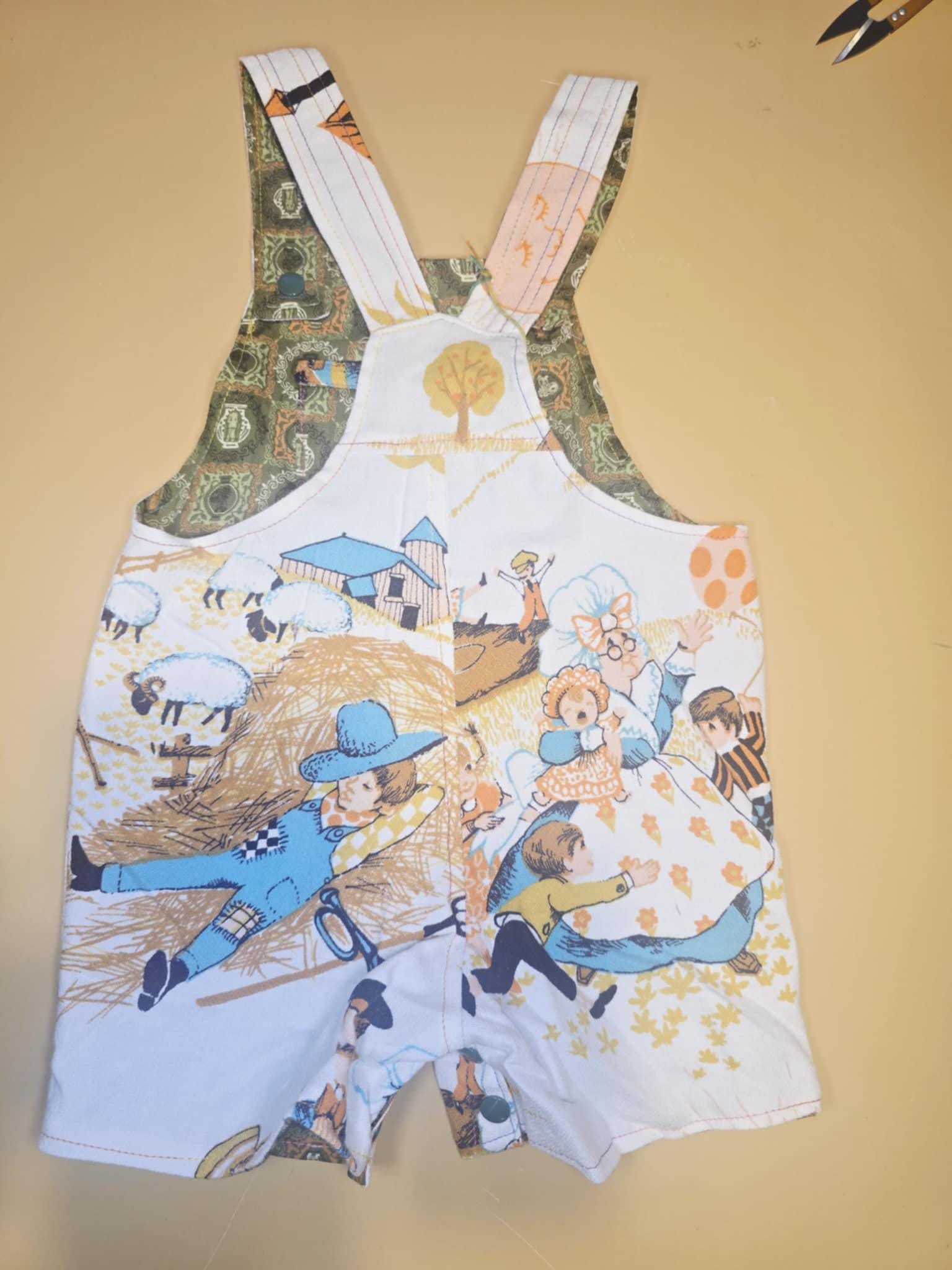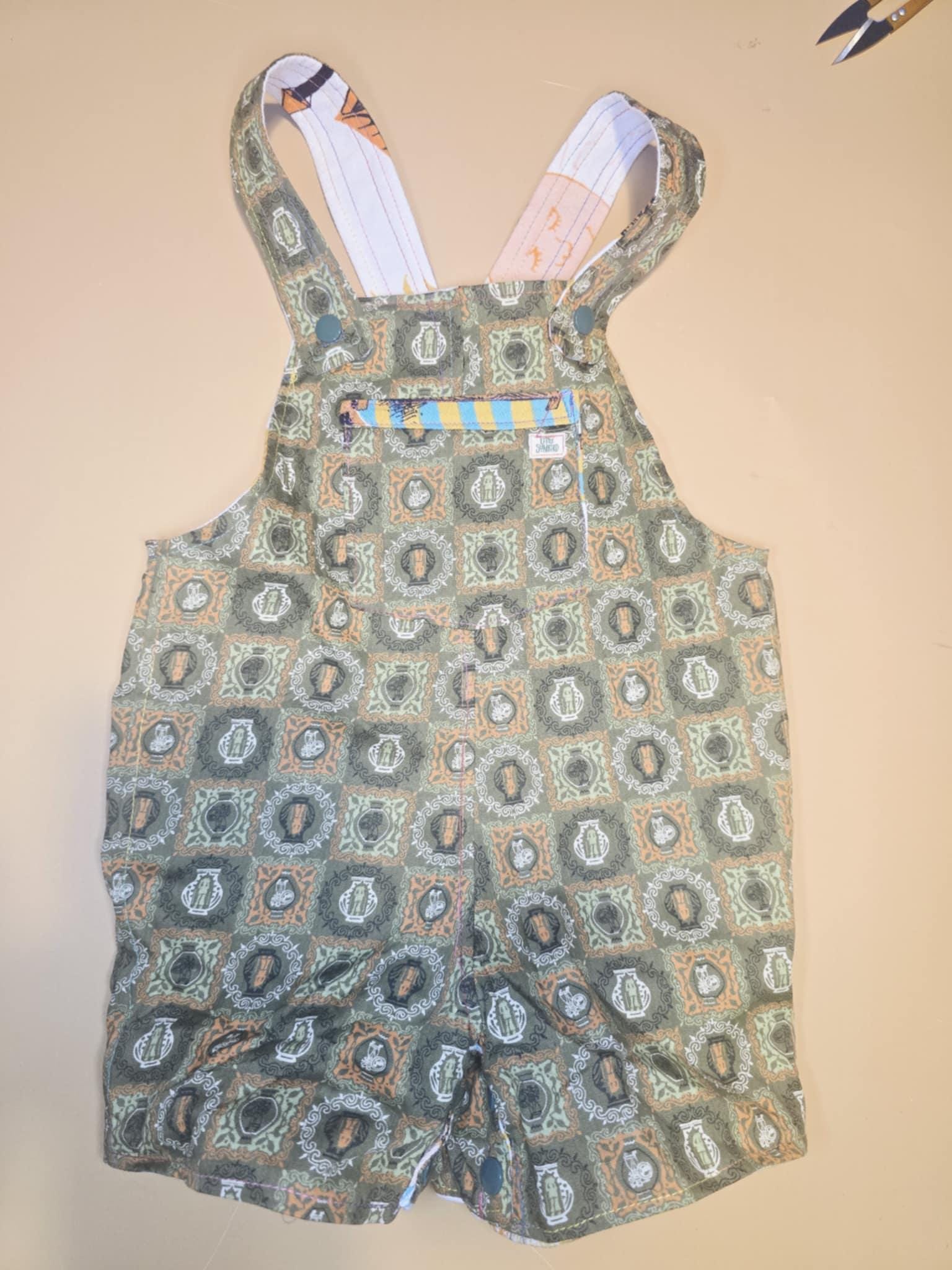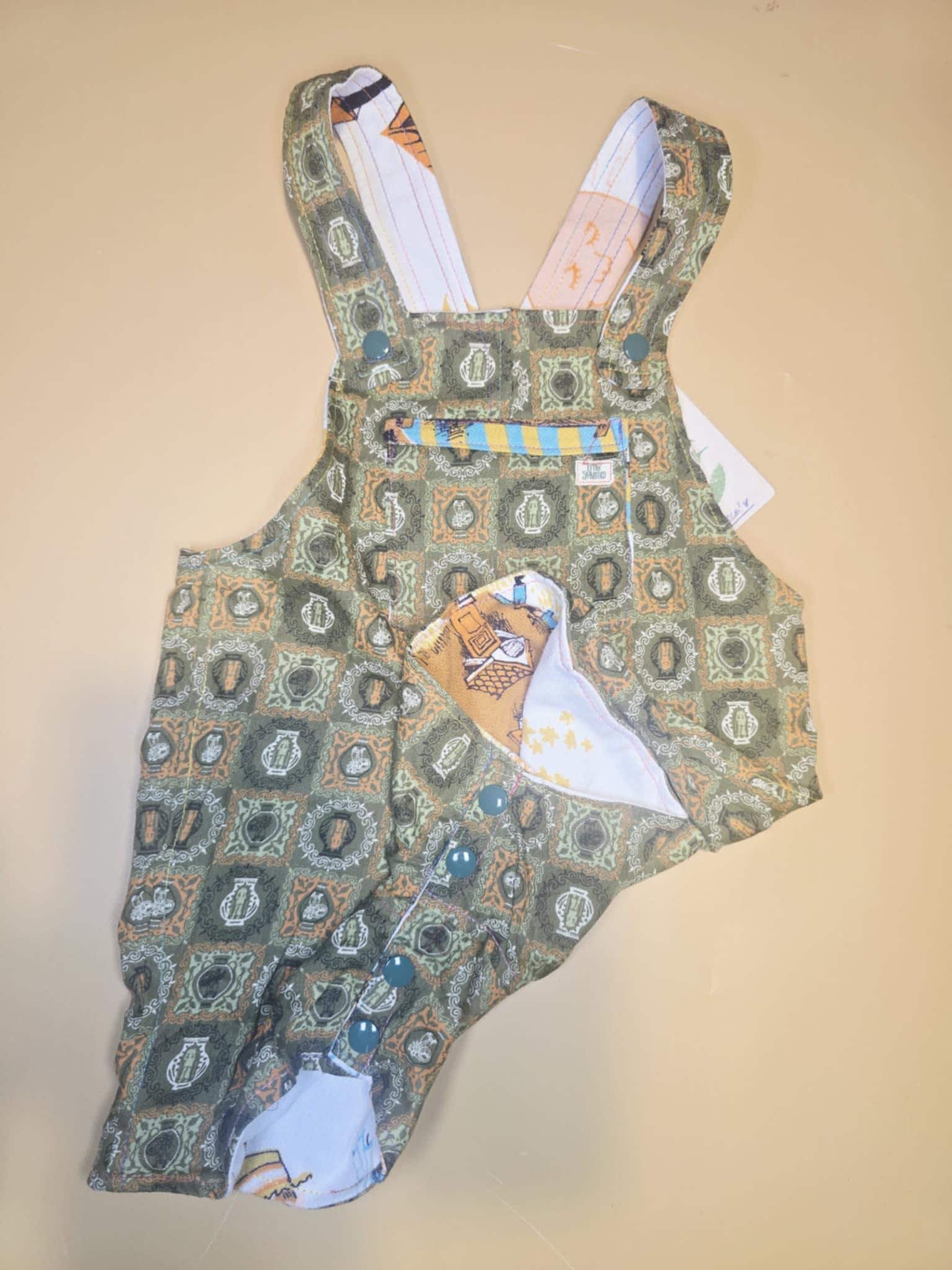 Made from breathable cotton with shoulder straps secured by snaps, a front pocket, and nappy snaps for quick changes. Handmade for comfort, movement, and everyday adventure.