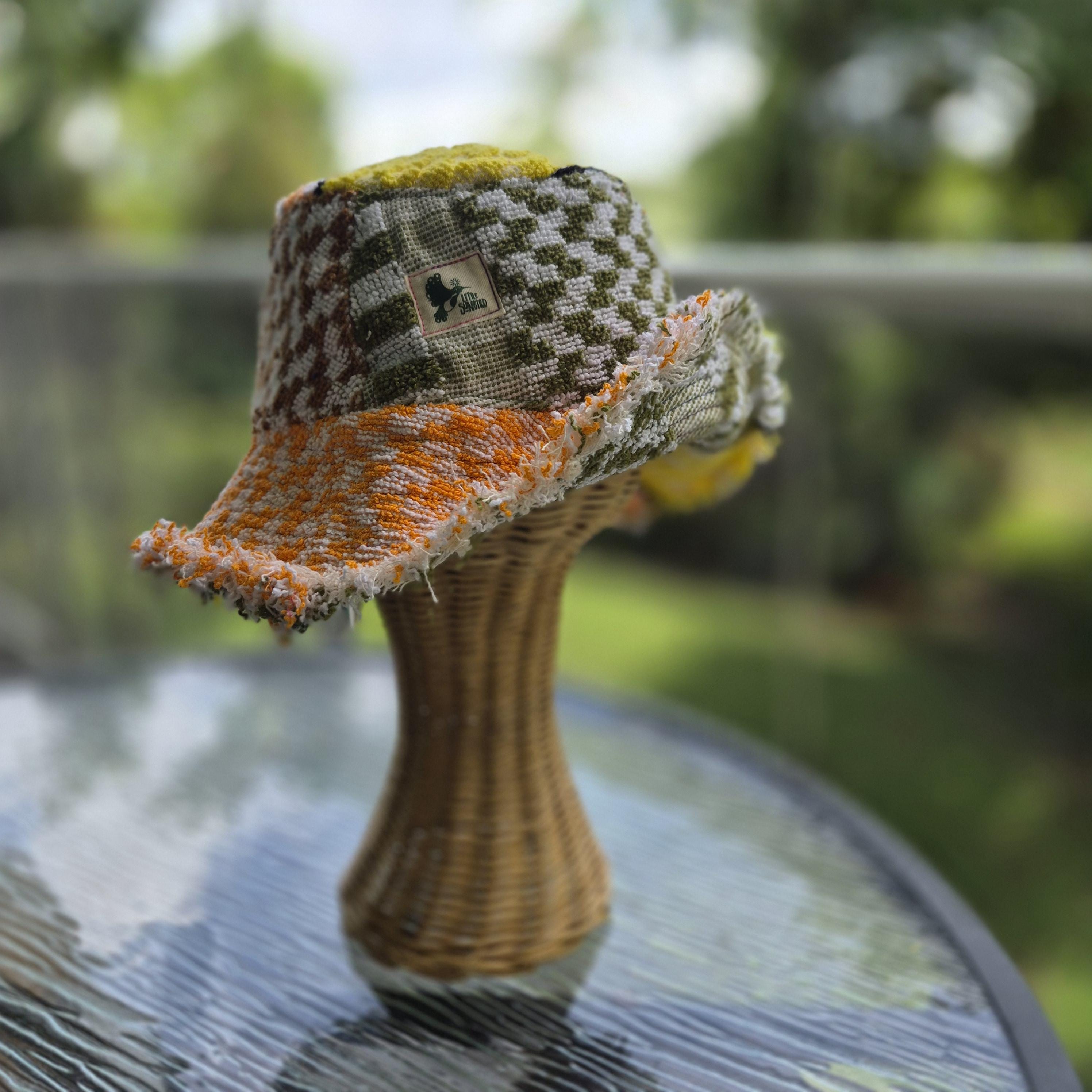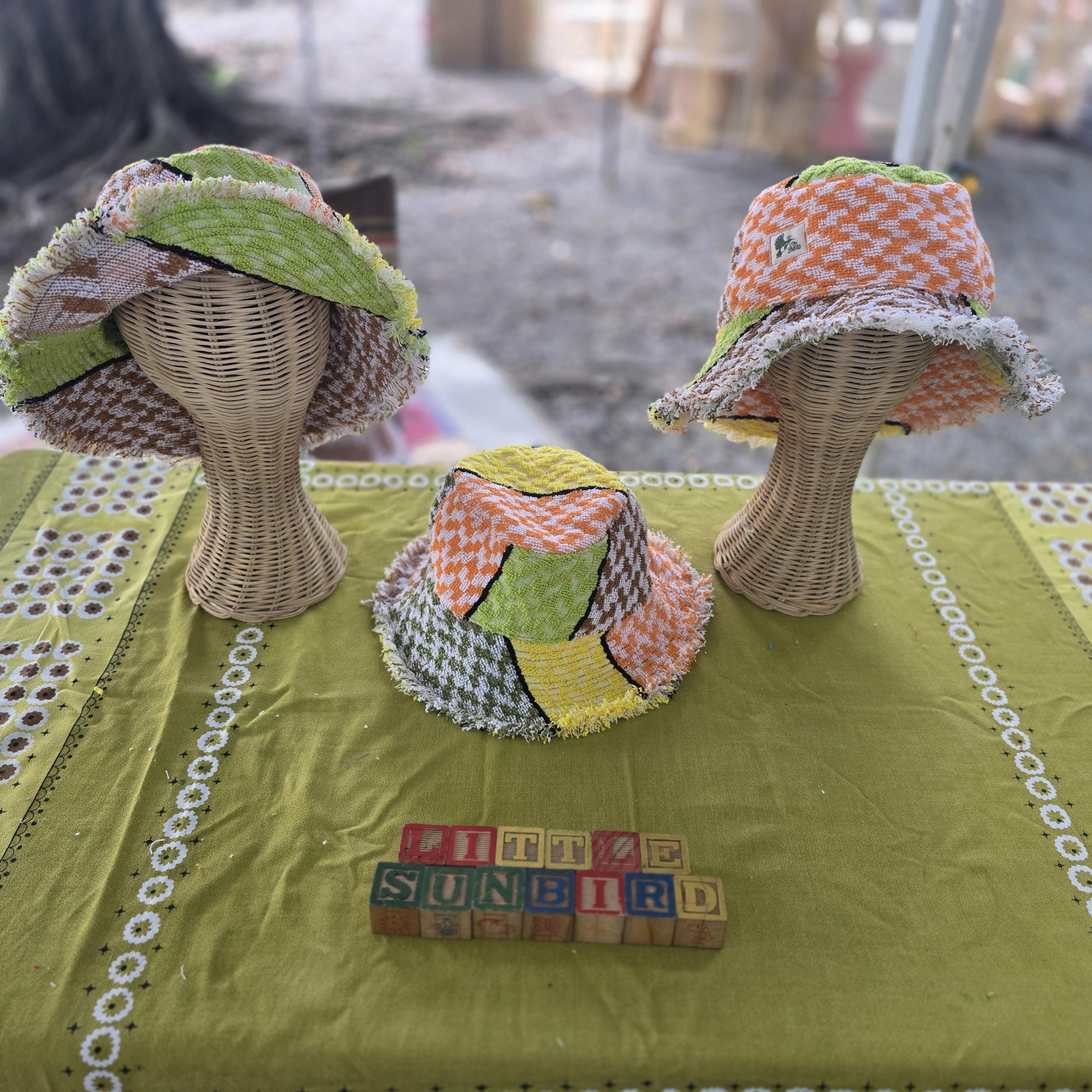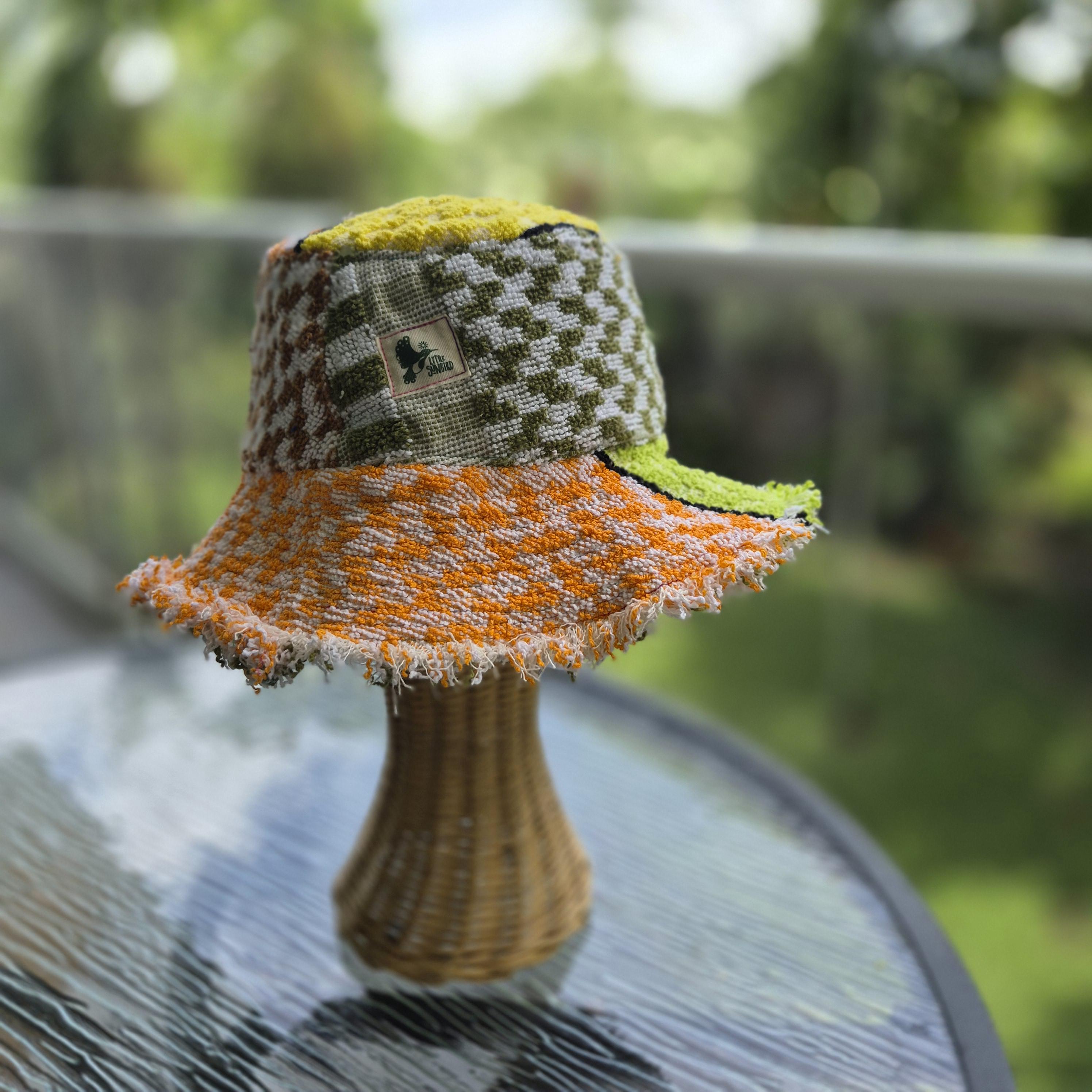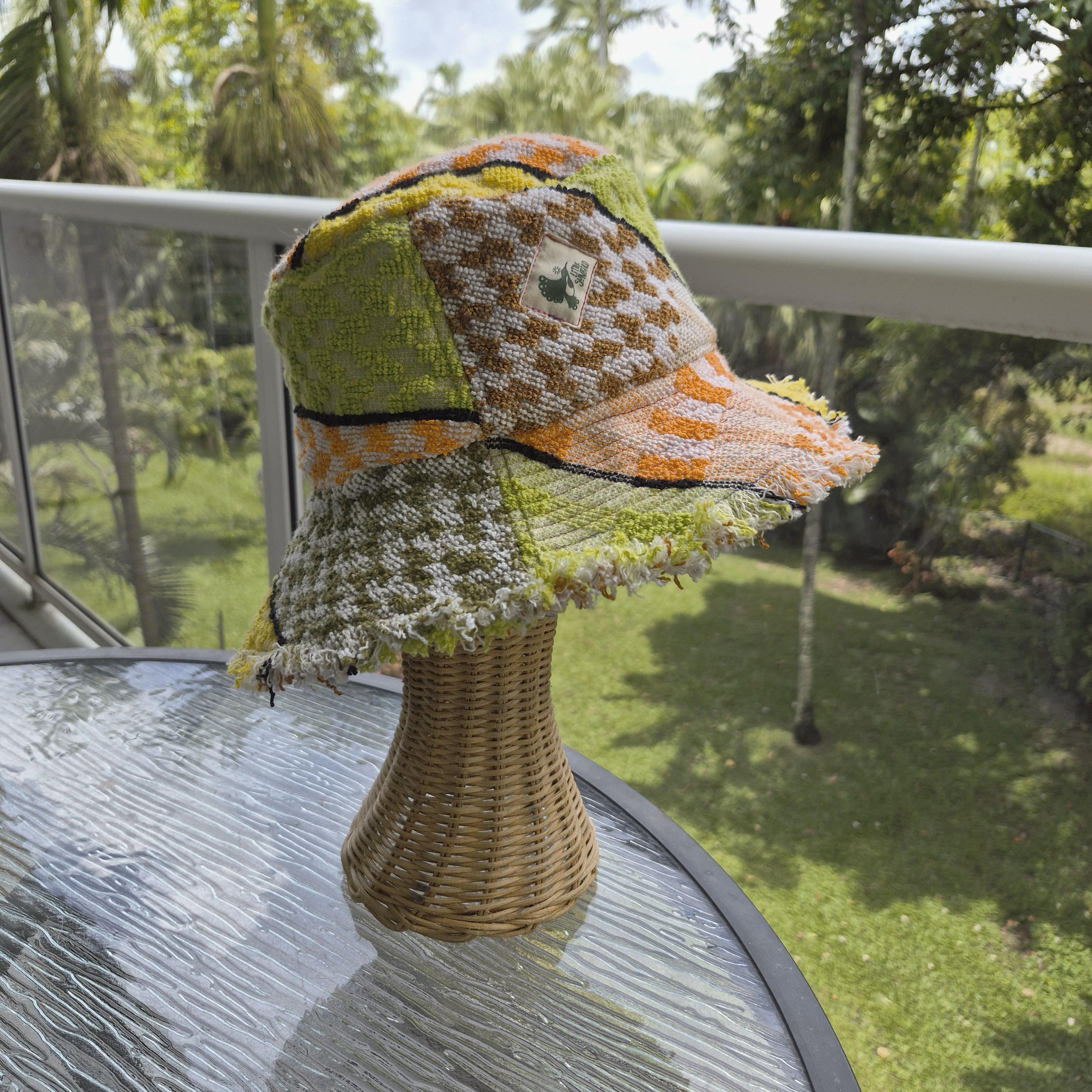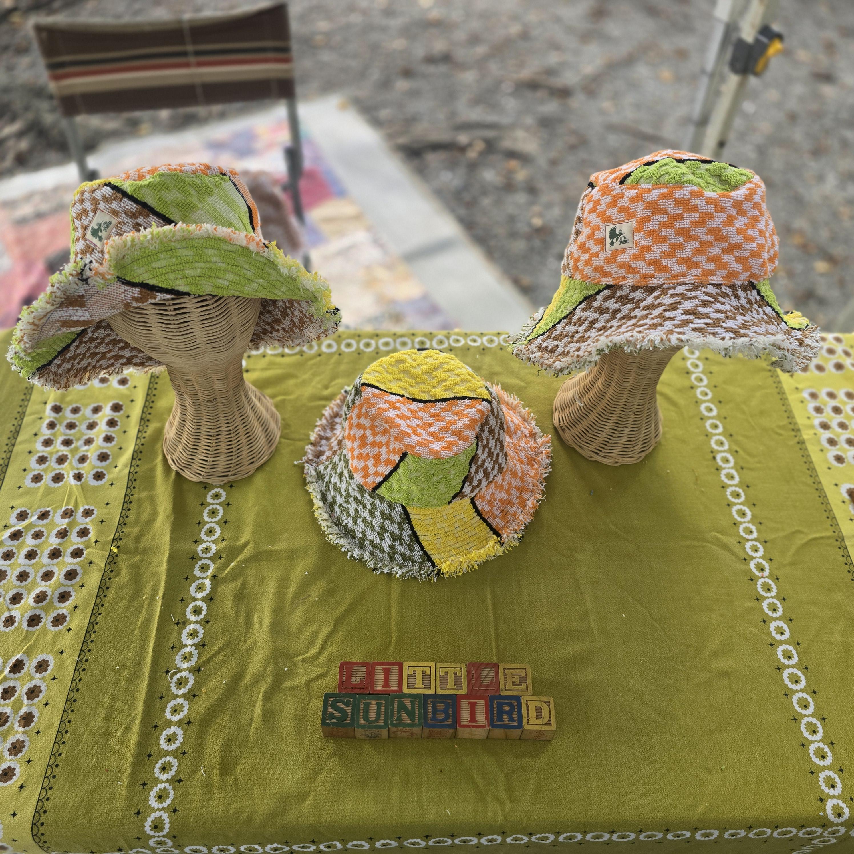 We are delighted to present our collection of bucket hats, thoughtfully crafted from vintage cotton towels.