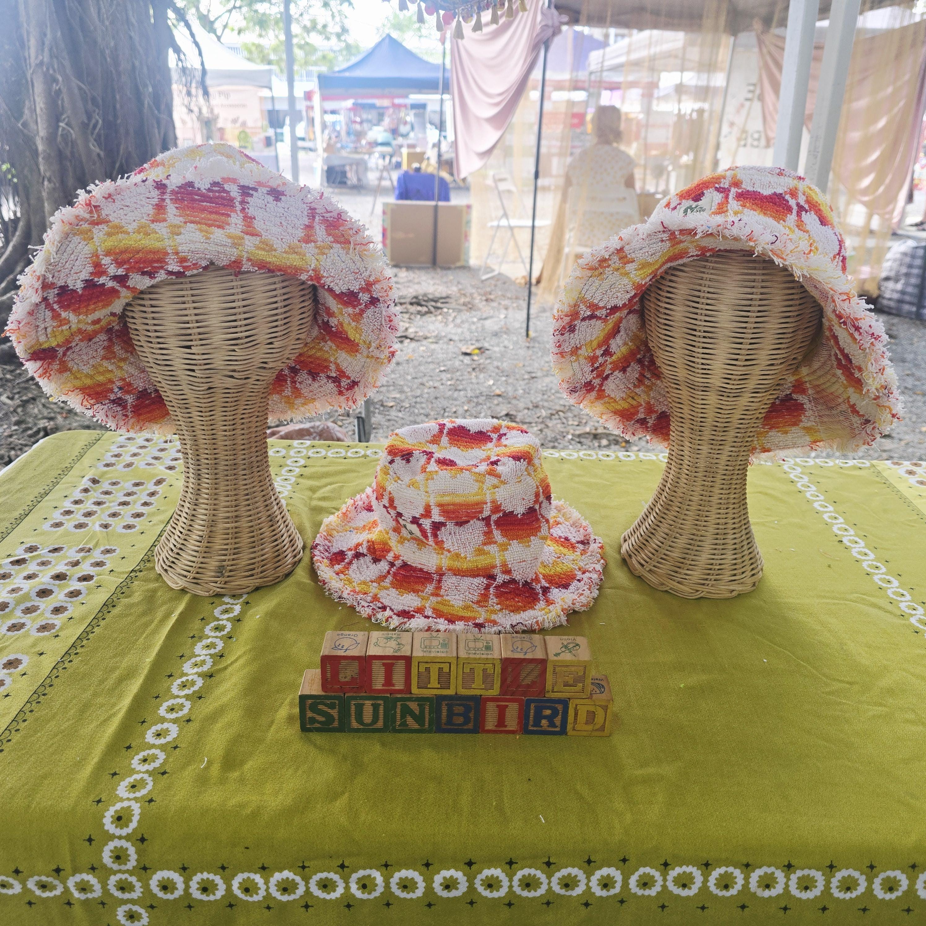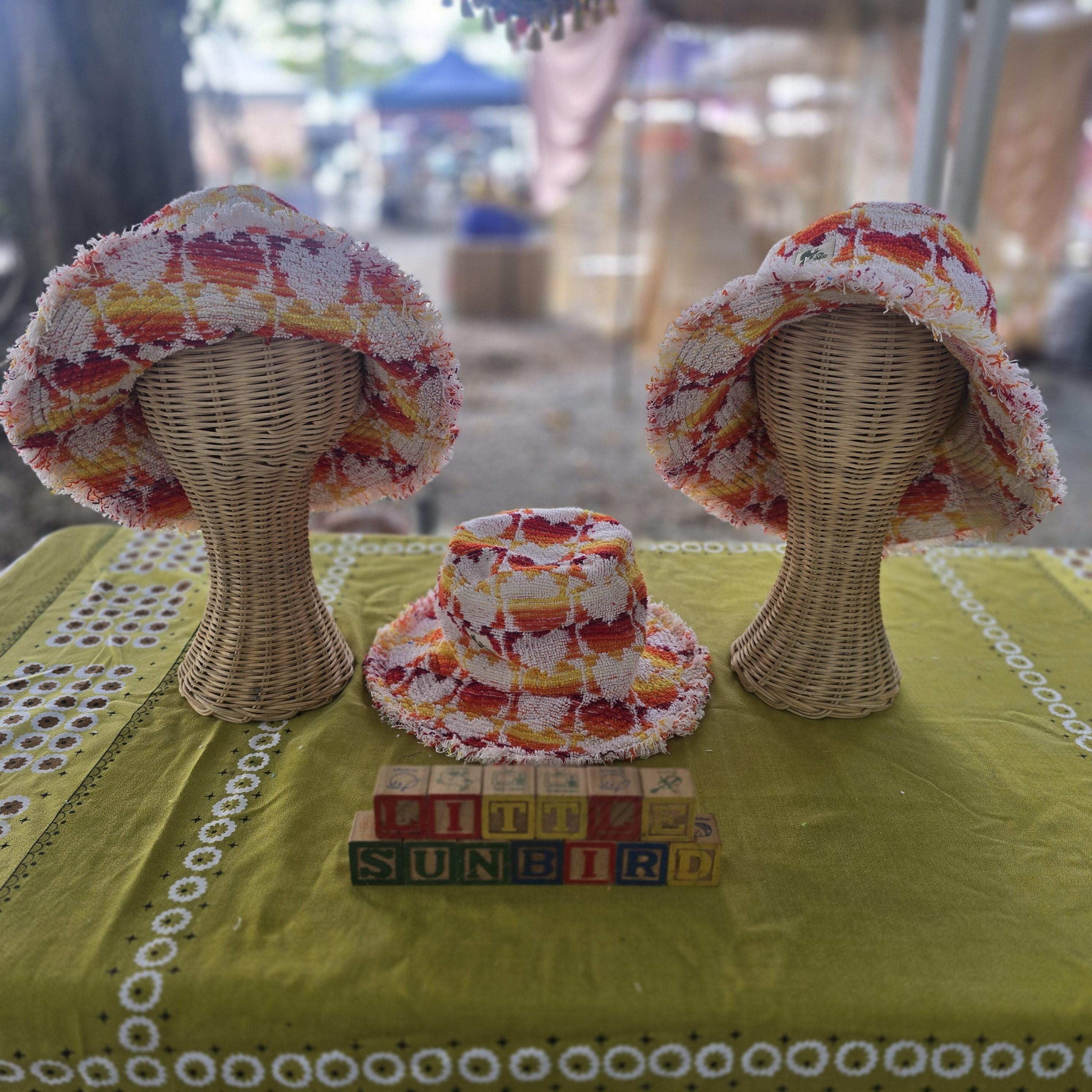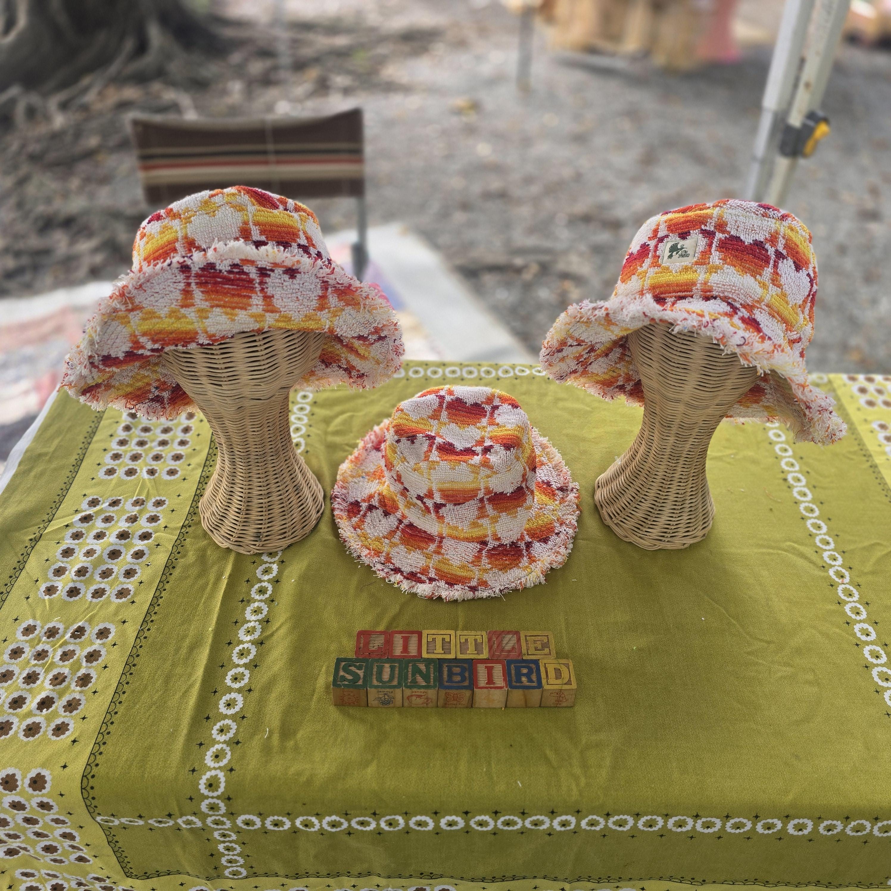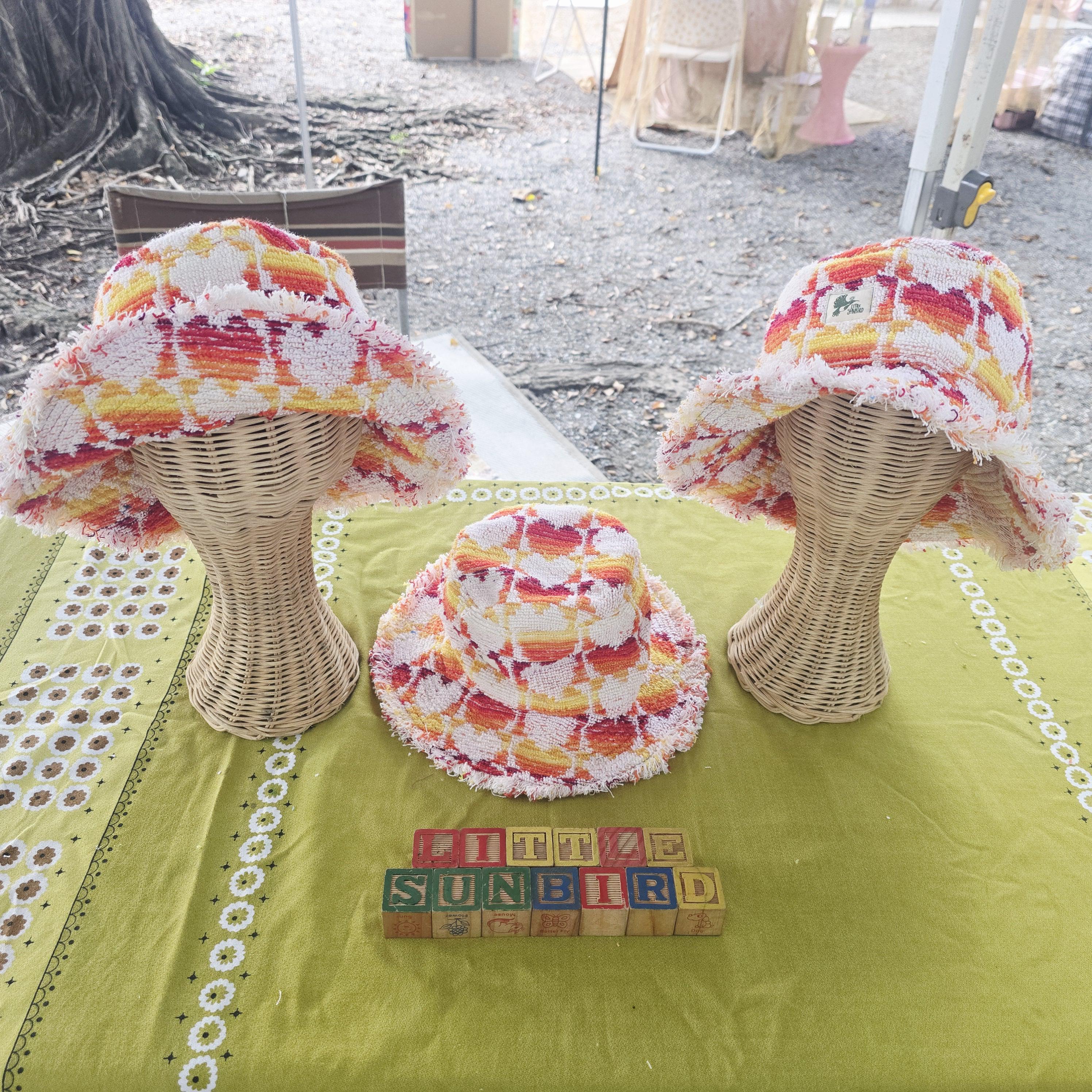 We are delighted to present our collection of bucket hats, thoughtfully crafted from vintage cotton towels.