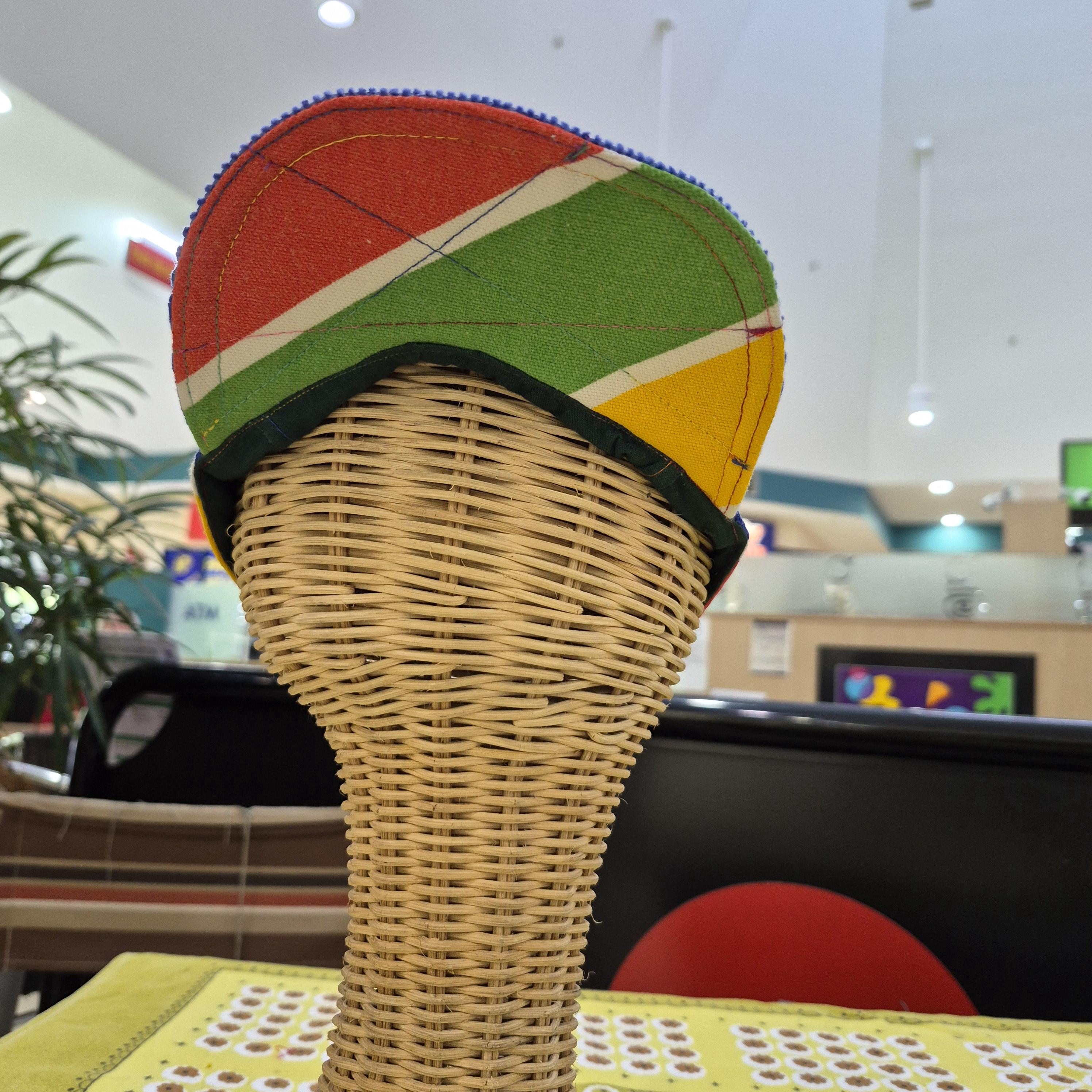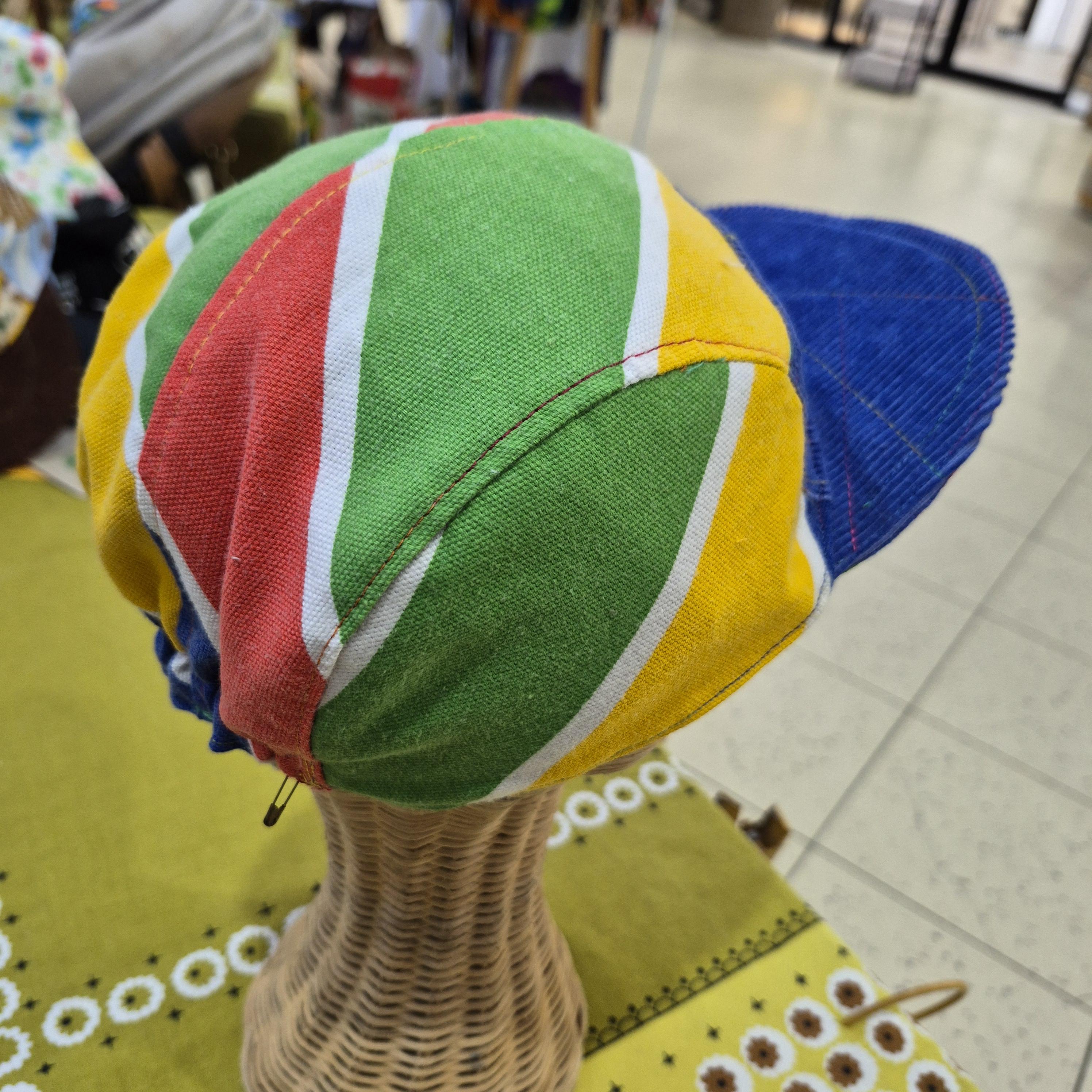 We would be delighted to offer a unique, handmade hat for your consideration. This charming piece is crafted from a beautiful bright vintage cotton, offering a distinctive texture and appeal. It is designed to fit a range of sizes, from 49cm to 55cm, with an elasticated band for comfortable wear. This versatile size makes it suitable for either a large child or tween. We believe it would be a delightful addition to any collection.