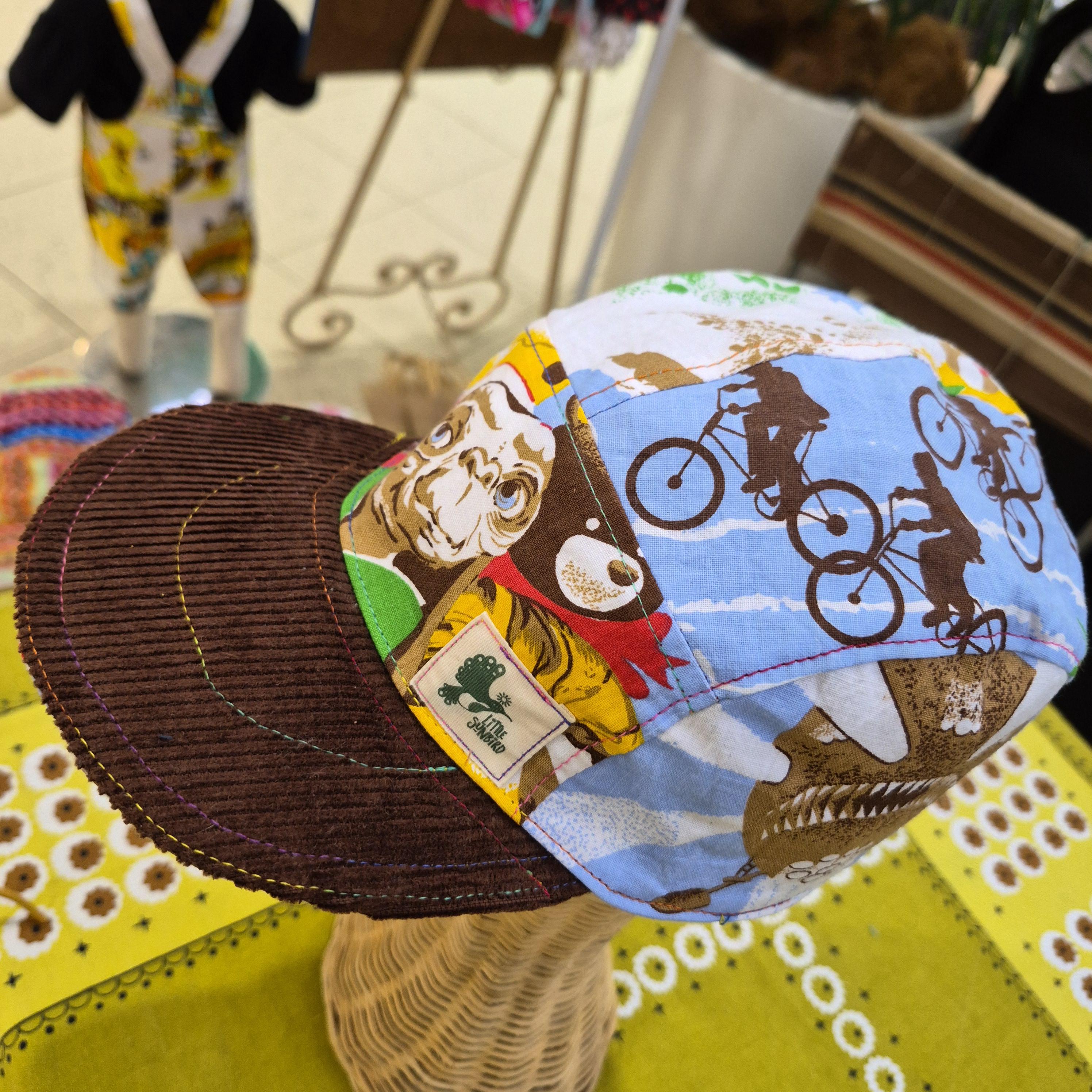 We would be delighted to offer a unique, handmade hat for your consideration. This charming piece is crafted from an upcycled vintage cotton sheet featuring a very retro E.T print, offering a distinctive texture and appeal. It is designed to fit a range of sizes, from 49cm to 55cm, with an elasticated band for comfortable wear. This versatile size makes it suitable for either a large child or tween. We believe it would be a delightful addition to any collection.
