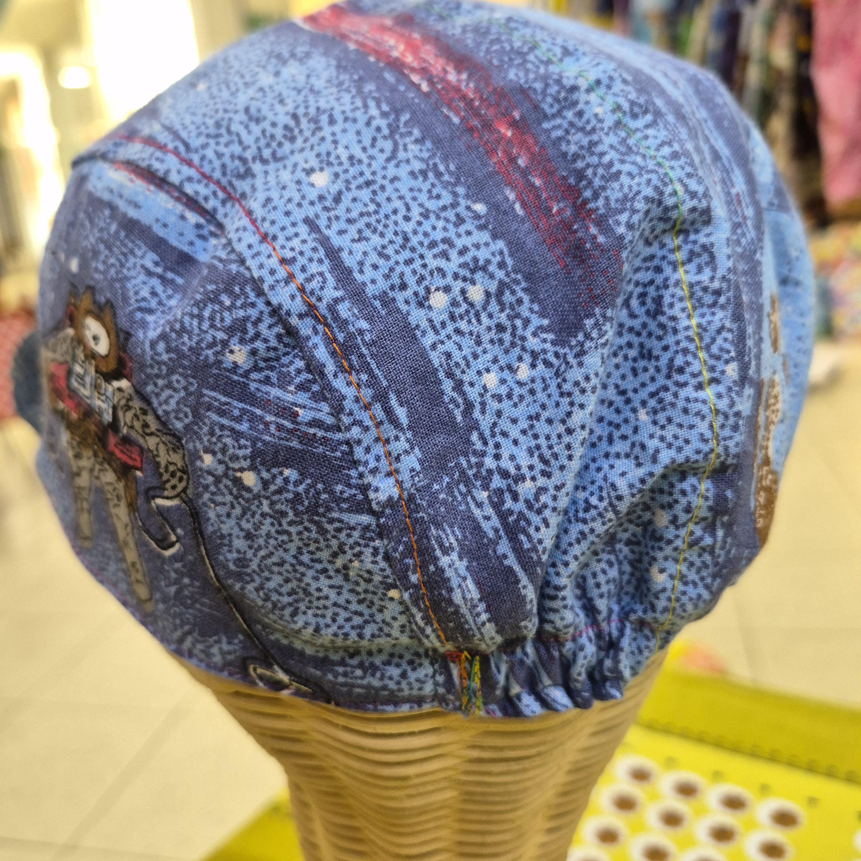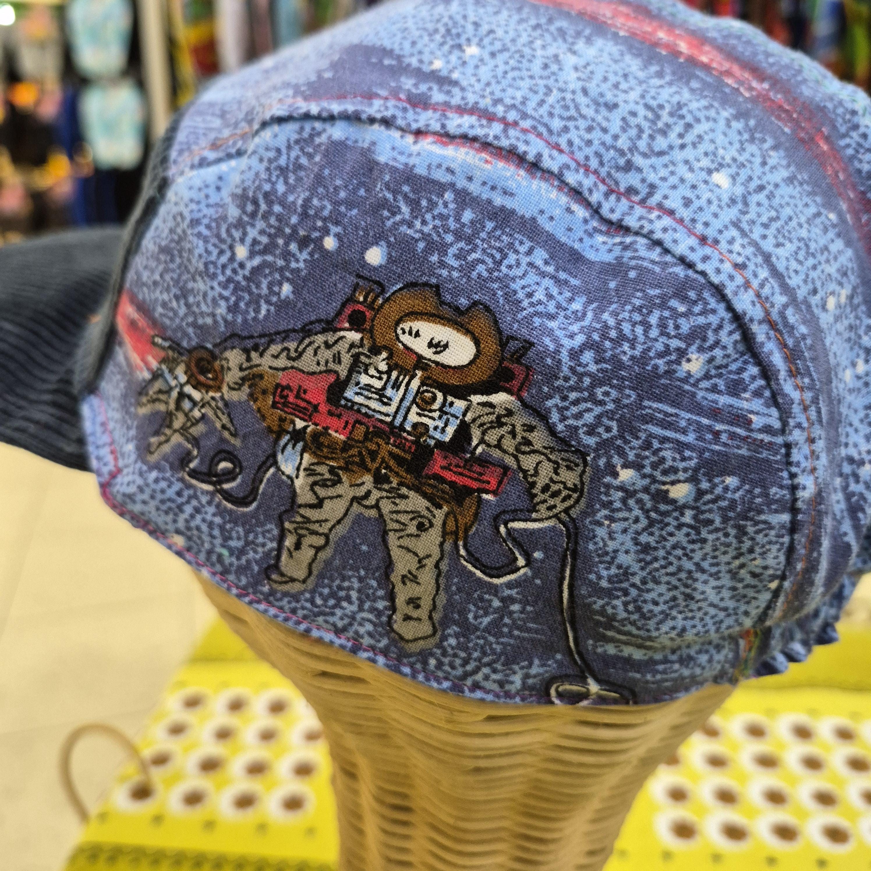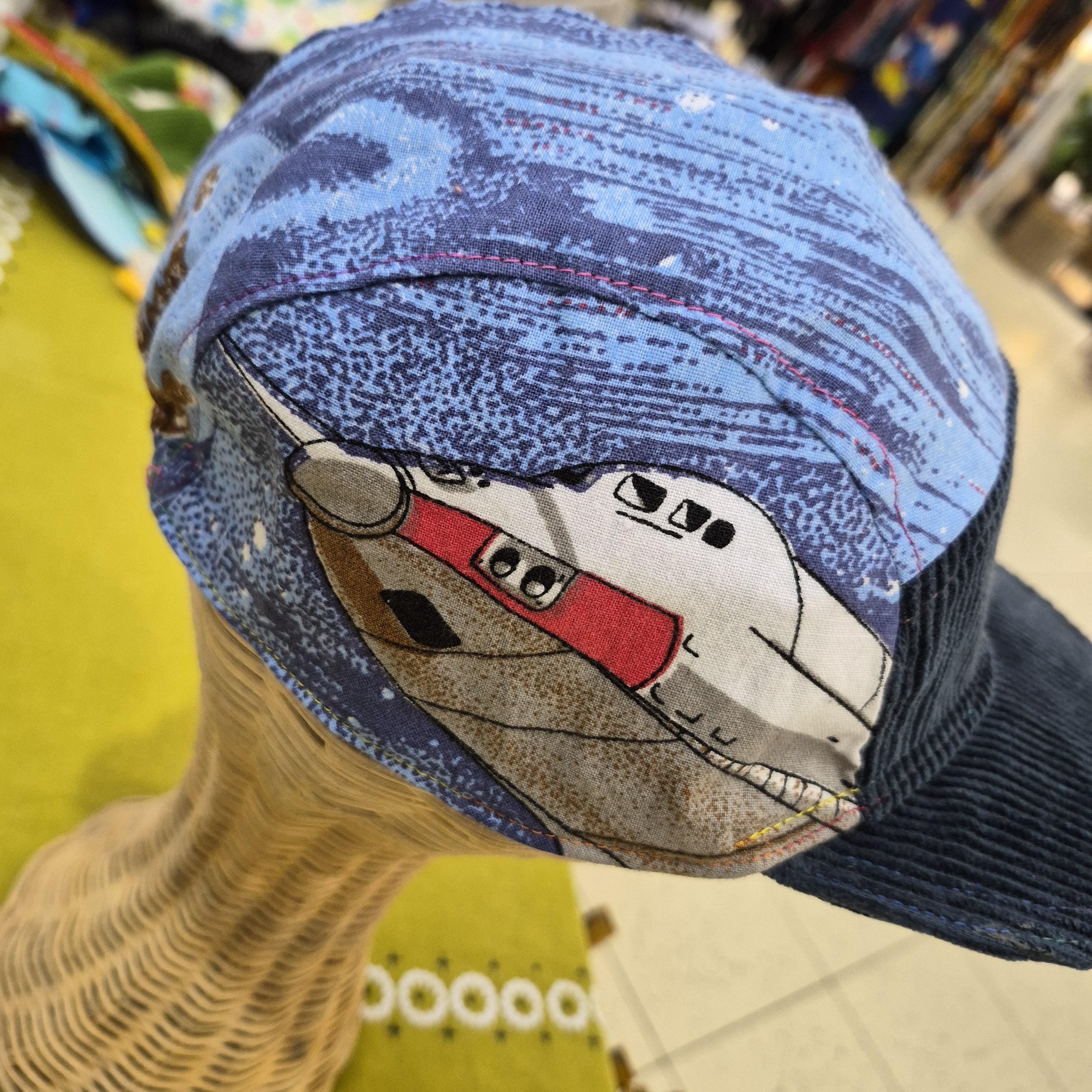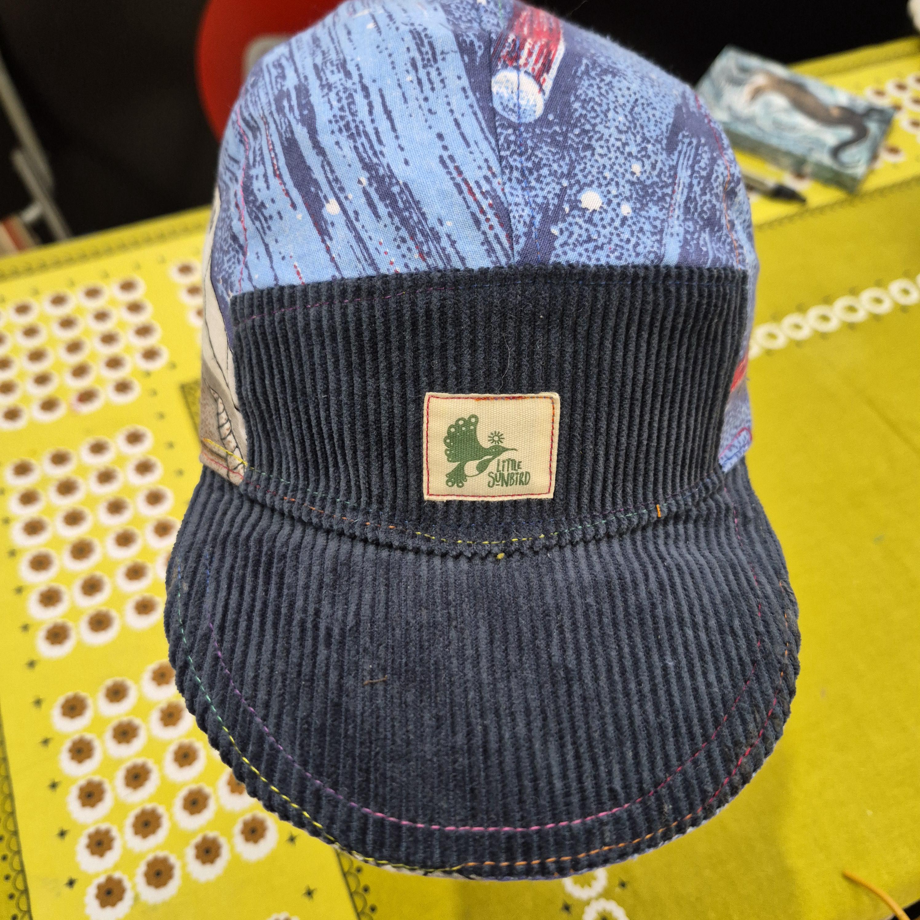 We would be delighted to offer a unique, handmade hat for your consideration. This charming piece is crafted from an upcycled vintage cotton sheet featuring a very retro Space Theme print, offering a distinctive texture and appeal. It is designed to fit a range of sizes, from 49cm to 55cm, with an elasticated band for comfortable wear. This versatile size makes it suitable for either a large child or tween. We believe it would be a delightful addition to any collection.