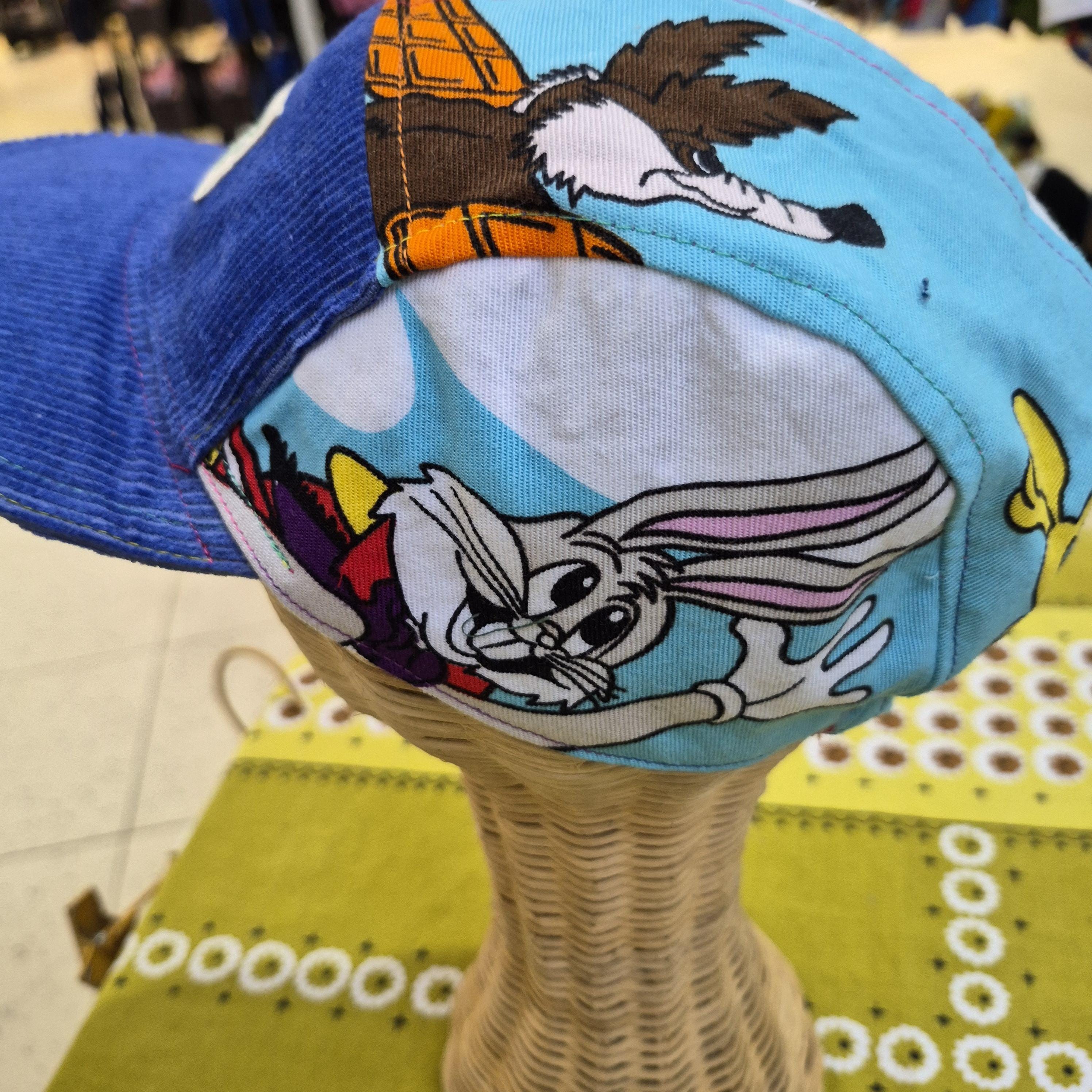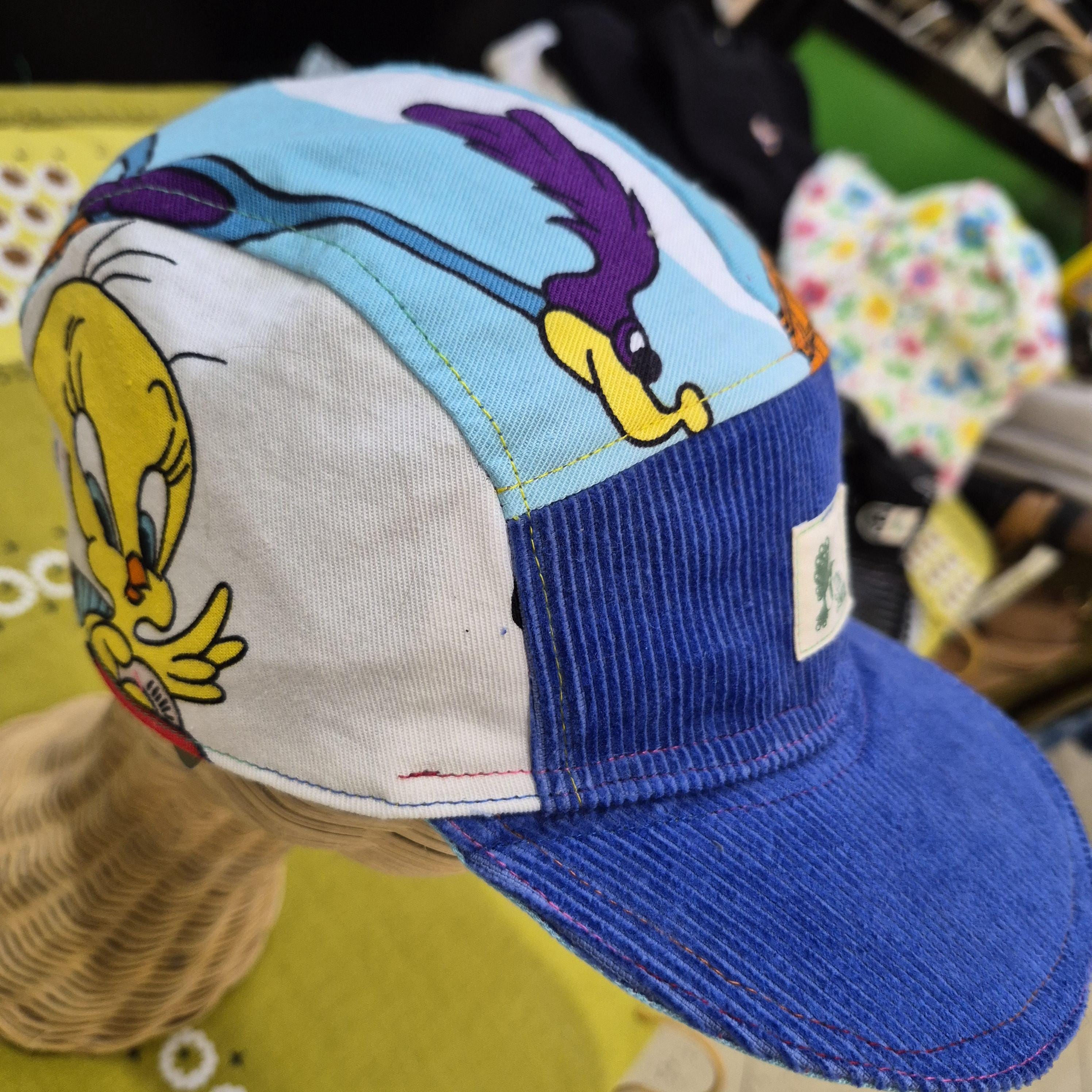 We would be delighted to offer a unique, handmade hat for your consideration. This charming piece is crafted from a beautiful bright vintage Looney Toons cotton, offering a distinctive texture and appeal. It is designed to fit a range of sizes, from 49cm to 55cm, with an elasticated band for comfortable wear. This versatile size makes it suitable for either a large child or tween. We believe it would be a delightful addition to any collection.